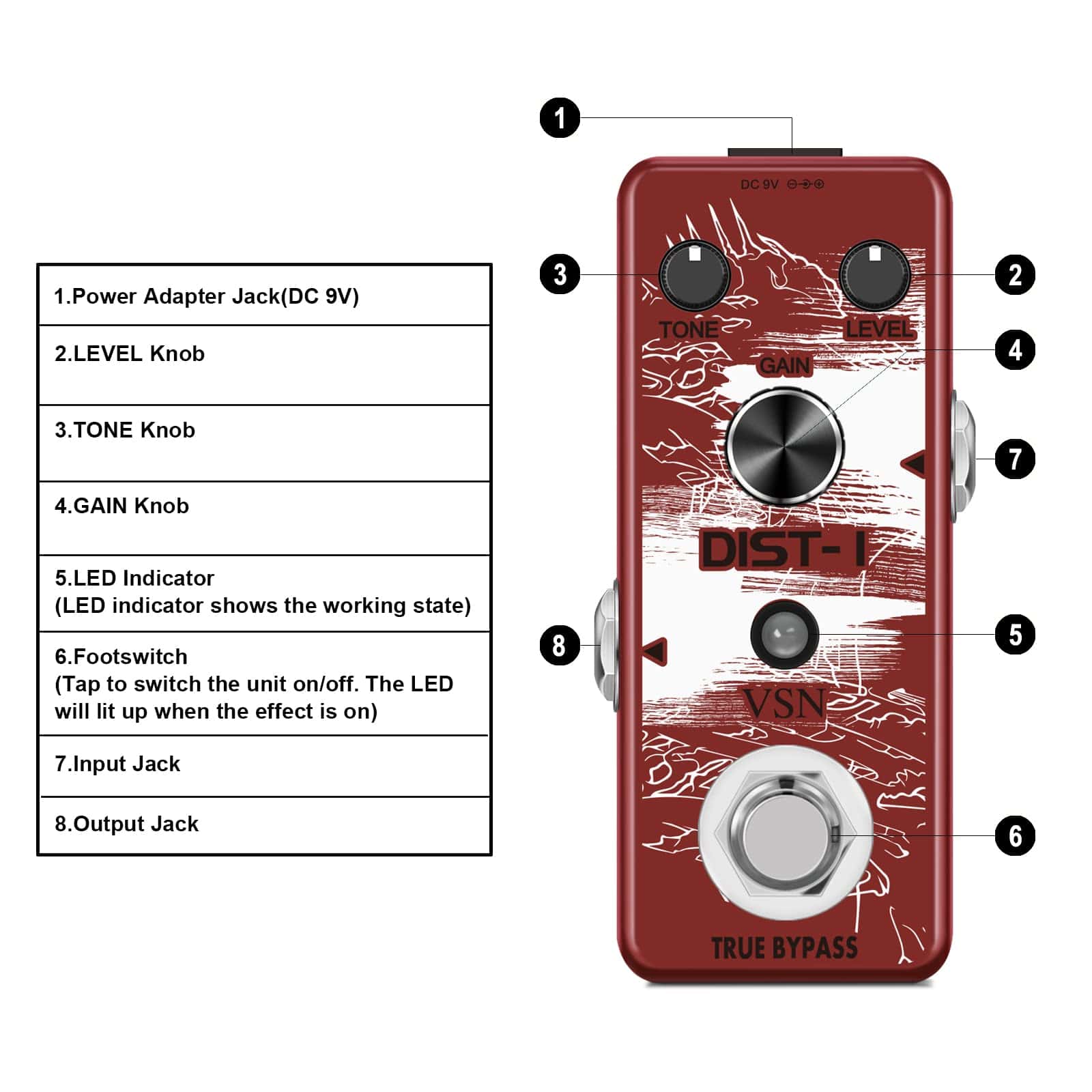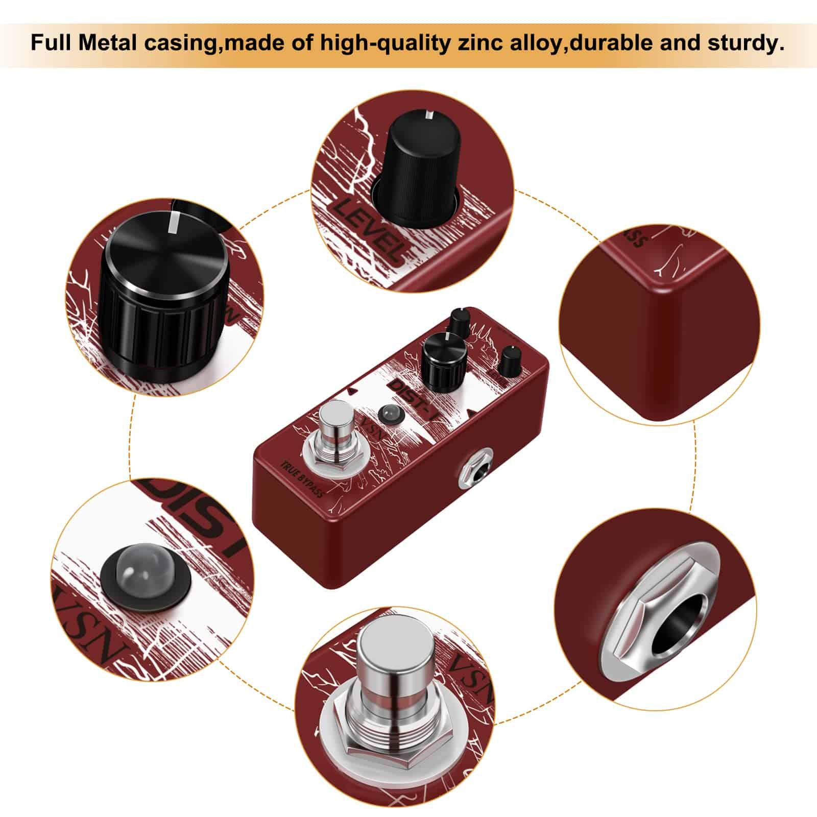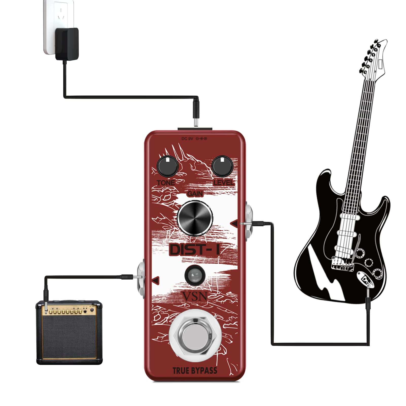 Pedal de Distorsión VSN, con distorsión muy realista de