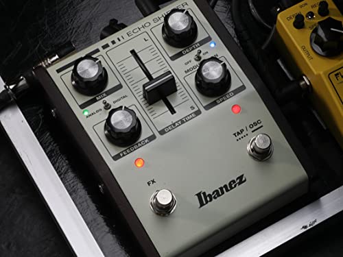 Ibanez se complace en presentar el nuevo Eco Shifter ES3. El pedal está equipado con modos de retardo analógico y digital. La configuración analógica proporciona un tono cálido y natural con un tiempo de retardo entre 40ms y 600ms, y a diferencia de otros pedales digitales que simplemente simulan el retardo analógico, el ES3 está equipado con circuitos analógicos reales. El modo digital ofrece tiempos de retardo más largos de hasta 1500ms. El ES3 es actualmente el único pedal en el mercado que proporciona la elección entre retardo analógico y digital en un solo pedal. Los usuarios también pueden elegir entre dos niveles de entrada diferentes, línea e instrumento. La mayoría de las guitarras eléctricas funcionarán mejor en el ajuste del instrumento, mientras que algunos instrumentos de salida más alta funcionarán mejor utilizando el nivel de línea. Los teclados y otros pedales de salida más alta que se ejecutan antes del ES3 también se beneficiarán del ajuste de nivel de línea. El ES3 también incluye un nuevo control de velocidad de modulación que ofrece un mayor control para adaptar el efecto a las preferencias específicas del jugador. A diferencia del ES2, donde la función de Oscilación necesitaba ser activada manualmente con un interruptor de palanca miniatura, esta misma función se puede activar simplemente pisando y manteniendo presionado el interruptor de pie en el lado derecho. Esto permite cambiar rápidamente la calidad y textura del retardo en medio de la actuación. El pedal conserva el control deslizante del tiempo de retardo, el interruptor de toque de retardo, así como los modos de oscilación y modulación del ES2. El efecto combinado de estas mejoras es un pedal más utilizable con una mayor versatilidad tonal y un mayor potencial musical
