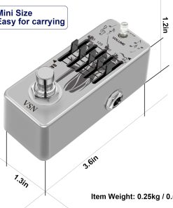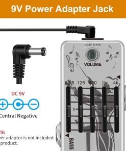 BASS-EQ Pedal de ecualización gráfica para bajo más pequeño del mundo. Ecualizador gráfico de 5 bandas con control de nivel maestro. Centros de frecuencia: 62.5Hz, 125Hz, 500Hz, 1kHz, 4kHz. Rango de ganancia ajustable de 18dB por banda. Carcasa de aleación de zinc muy pequeña y exquisita. True bypass. Especificaciones: Marca: VSN Modelo: Bass EQ Color: Plata Material: Aleación de zinc Entrada: Conector mono de 1/4 (impedancia: 1M Ohms) Salida: Conector mono de 1/4 (impedancia: 10k Ohms) Fuente de alimentación: Adaptador de CA 9V DC (Adaptador no incluido) Tamaño del artículo: 9.5 x 3.8 x 5.2cm Peso del artículo: 248g Contenido del paquete: 1X Pedal VSN Bass EQ 1X Manual de usuario 1X Caja de embalaje Precauciones: El adaptador de corriente no está incluido. No utilices el pedal en entornos de alta temperatura, alta humedad o bajo cero. No lo utilices a la luz directa del sol. Por favor, no desarmes el pedal por ti mismo.