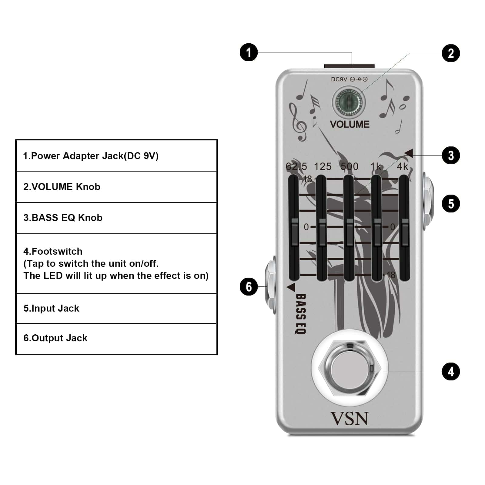Pedal de ecualización VSN Bass EQ, Pedal de ecualización de