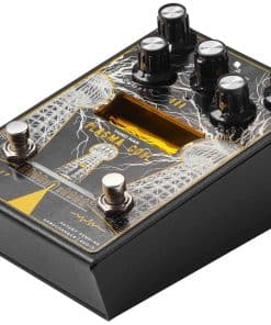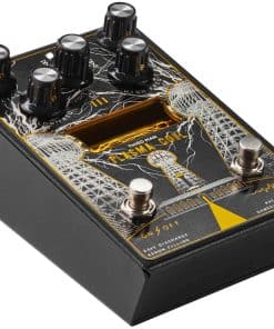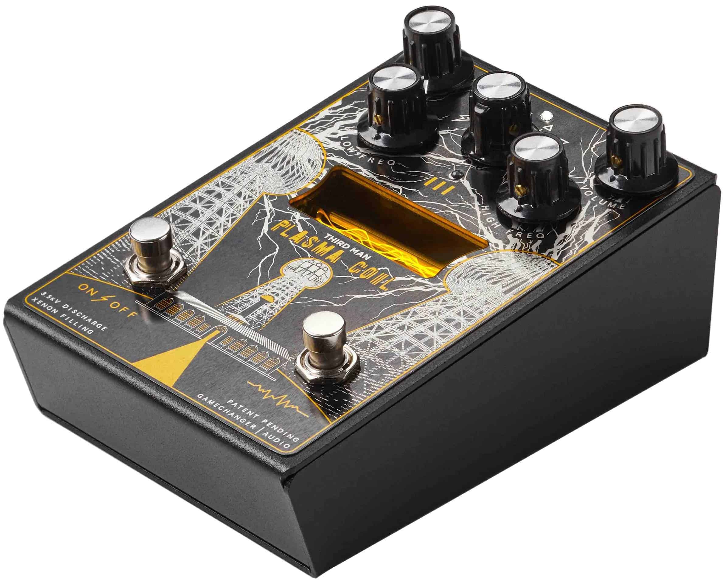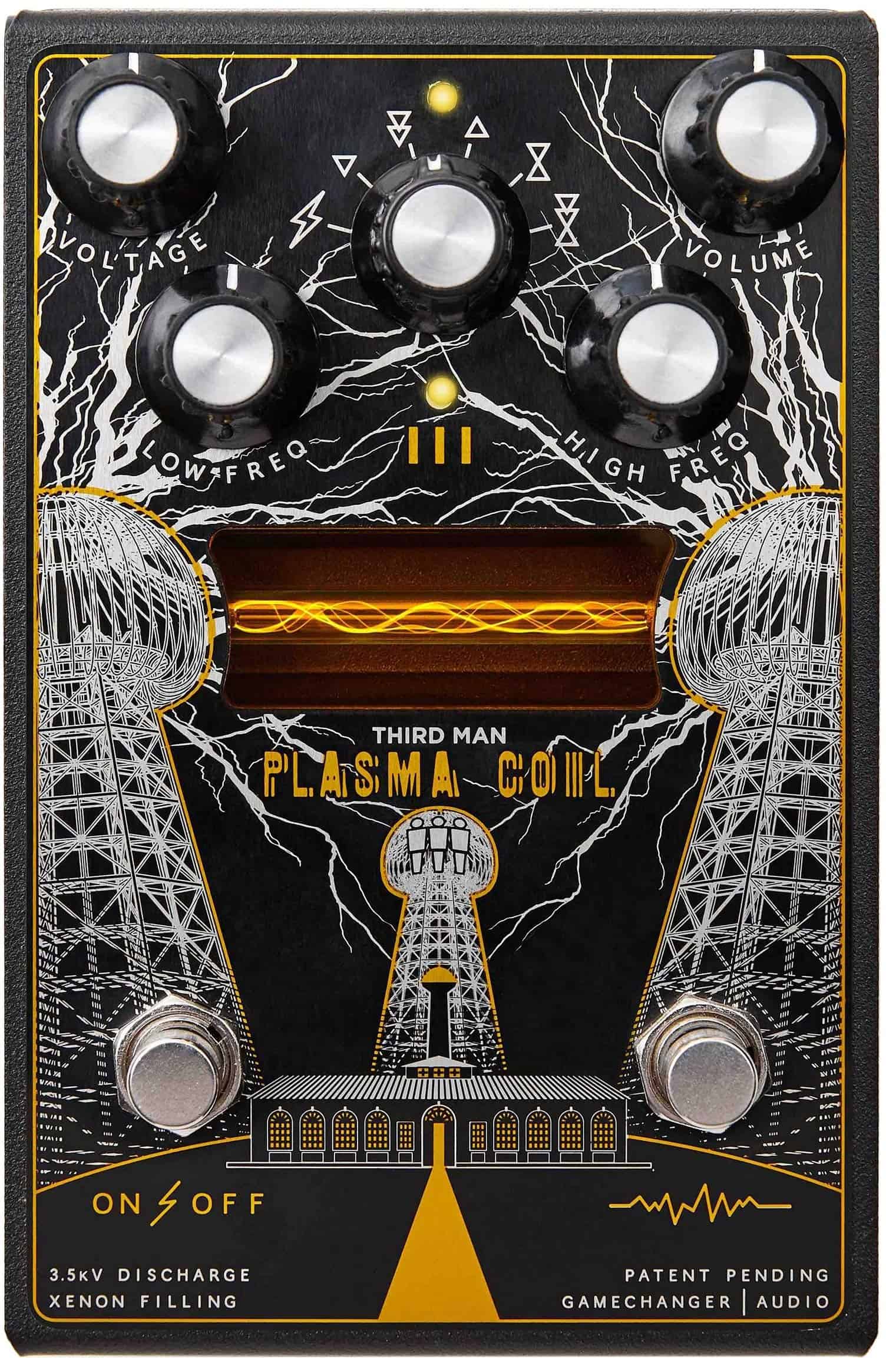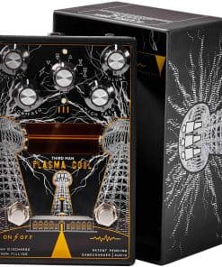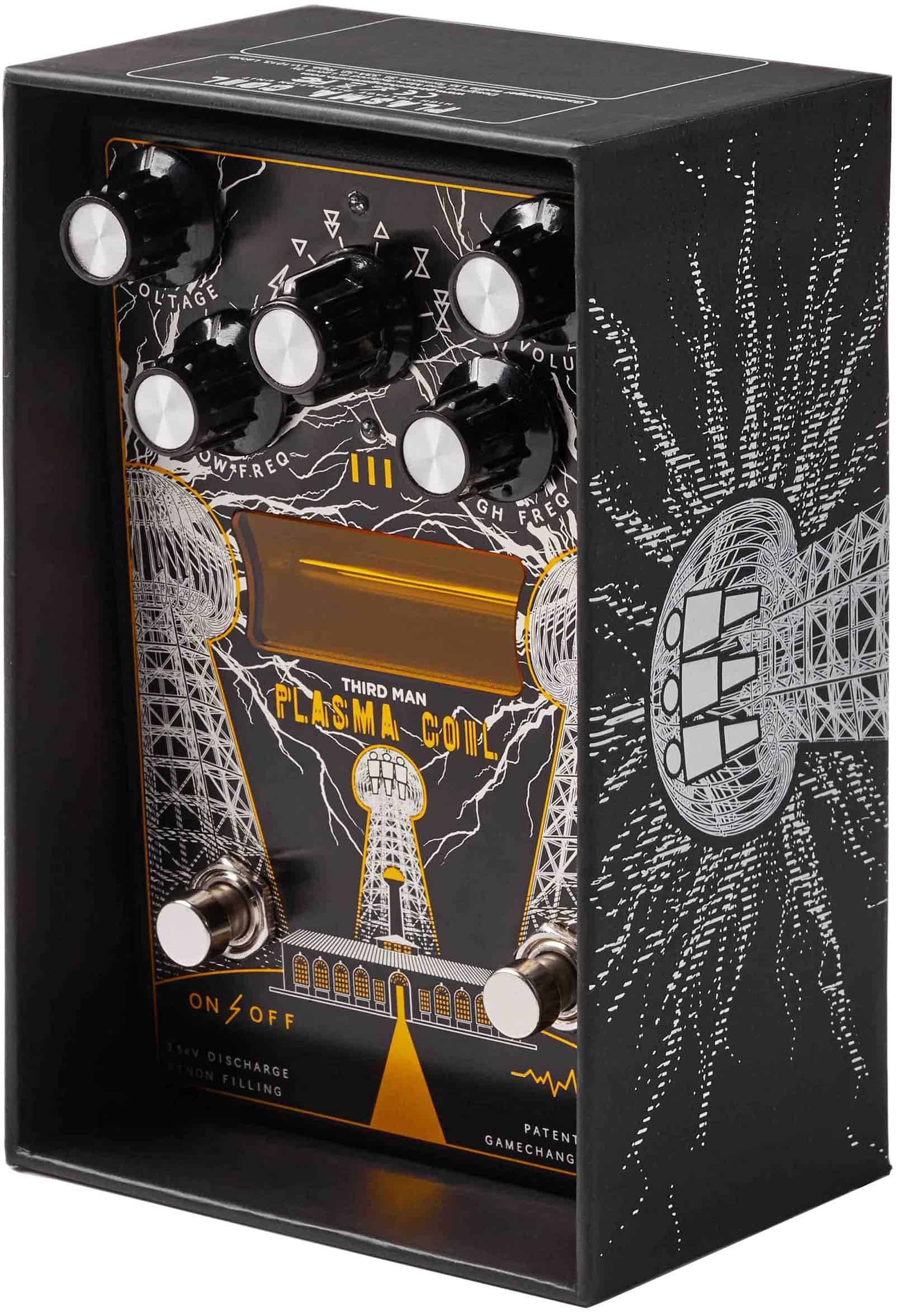 El PLASMA Coil es una versión del Pedal PLASMA diseñado en conjunto con Jack White y Third Man Records. Es una forma revolucionaria de producir distorsión convirtiendo la señal de tu instrumento en una serie de descargas de plasma de alto voltaje en un tubo sellado lleno de xenón. El resultado es una distorsión increíblemente aguda y chispeante que es extremadamente clara, receptiva y, lo más importante, ¡divertida! Esta tecnología pendiente de patente de descarga eléctrica de alto voltaje también actúa como un dispositivo de puerta de ruido natural que crea fuertes contrastes entre las notas entrecortadas, así como eliminando todo el ruido no deseado y el zumbido del captador. El tubo de descarga eléctrica del PLASMA Coil produce hermosos rayos de luz visibles que reaccionan a la señal de entrada, creando una experiencia cautivadora. En esencia, estás tocando un rayo de electricidad. La versión de Jack White tiene efectos de octava arriba y abajo arenosos y con fallas: Aumento de volumen, 2 modos subarmónicos (estilo bitcrush octava abajo), 1 modo armónico superior (estilo Octafuzz octava arriba) y 2 modos mixtos (armónicos superiores e inferiores combinados). Estos efectos se cambian con el interruptor de pie secundario del pedal que puede funcionar en modos de latching y momentáneo. El PLASMA Coil convierte la señal de tu instrumento en una serie rápida de descargas eléctricas, lo que resulta en una gran cantidad de saturación harmónica no lineal que provoca ataques extremadamente ricos y receptivos, y resalta agudos chillidos y armónicos. Estos artefactos armónicos, producidos como subproducto de la descarga de alto voltaje, son poco comunes en la amplificación de señal tradicional, por lo que la distorsión del PLASMA Coil es algo nunca antes escuchado. Tan pronto como dejes de tocar, la descarga eléctrica dentro del tubo lleno de gas se interrumpe y el pedal no producirá ninguna señal de salida en absoluto. Esta característica te permite lograr contrastes extremos entre notas individuales, eliminando todos los ruidos intermedios creados por los captadores del instrumento o por cuerdas zumbantes.