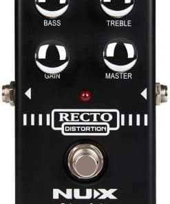 El pedal NUX RECTO DISTORTION de la serie de reedición como un sonido de distorsión pesado con respuesta de graves ajustada. Utiliza un circuito analógico puro para simular ese famoso tono de alta ganancia de preamplificador americano de los años 90! Efecto de distorsión pesado para Hard Rock y Metal Cantidad extra de aumento de ganancia a la frecuencia más alta para un efecto de distorsión más impactante EQ Pasivo de Graves y Agudos Conmutación de Hardware True-bypass Impedancia de entrada: 1M Ohms Impedancia de salida: 10K Ohms Alimentación: batería de 9V o adaptador de corriente externo que suministre 9V CC regulado mínimo 300mA Dimensiones: 121(L) X 77(W) X 48(D) mm Peso: 230g