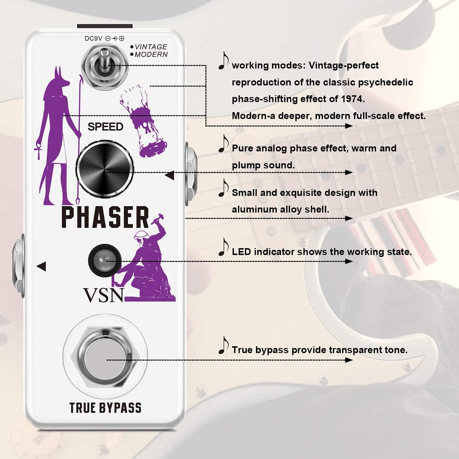 Pedal de Efecto de Guitarra VSN Phaser Efecto de Fase