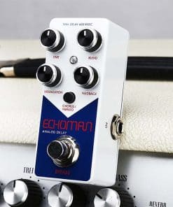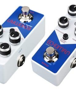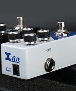 El Pedal de Efecto de Guitarra de Retraso Analógico Xvive V21 es una versión monaunal simplificada del Pedal de Retraso Analógico de Memoria diseñado por Howard Davis. Utiliza el chip BBD MN3005 de Xvive para ofrecer un retraso cálido del 100% de hasta 600 milisegundos. El V21 tiene un ancho de banda amplio y mantiene una buena respuesta a altas frecuencias incluso con ajustes de retraso largos. Cuenta con cuatro mandos: Tiempo, Mezcla, Modulación y Feedback. El mando de Mezcla te permite ajustar la señal de salida seca/retrasada mientras que el Feedback proporciona auto-oscilación. También puedes crear un efecto de coro o vibrato ajustando los mandos de control de cierta manera. ESPECIFICACIONES TÉCNICAS: Tiempo Máximo de Retraso: 600ms Modo de Derivación: Derivación Activa Impedancia de Entrada: 900 kOhm Mono/Estéreo: Entrada Mono, Salida Mono Efectos: Coro/Vibrato Fuente de Alimentación: Suministro de Energía de 9V Dimensiones: 3.8 x 1.8 x 1.8″ Peso: 0.6 lb También Viene con: Suministro de Energía Blucoil 9V 670mA El Suministro de Energía de 9V asegura que la cantidad correcta de energía se transmita a tus dispositivos electrónicos. Ofrece protección contra cortocircuitos, sobrecalentamiento, sobrecorriente y sobretensión. El suministro de energía cuenta con un cable extra largo de 3m y un rango de voltaje de entrada universal de 100-240V ~ 50/60Hz. Funciona con una amplia gama de pedales de efectos e instrumentos musicales electrónicos con punta negativa que necesiten los mismos requisitos de amperaje y voltaje. Cable de Instrumento Recto Blucoil de 10 pies El cable de instrumento de 10 pies de Blucoil interconecta tus instrumentos musicales electrónicos (por ejemplo, guitarras, bajo, teclados) a la entrada desbalanceada de un preamplificador o amplificador. Cuenta con conectores macho de 1/4″ a macho de 1/4″ rectos mono. Los conectores metálicos Neutrik aseguran una durabilidad fiable e integridad de contacto mejorada. Los cables están protegidos con blindaje de PVC conductor, que cancela la interferencia electromagnética y radiofrecuencia. ¡Obtén este paquete hoy y recibe un paquete de 2 Cables de Parche Pedal Angulados Blucoil y un paquete de 4 Púas de Guitarra de Celuloide!