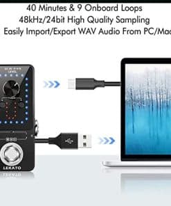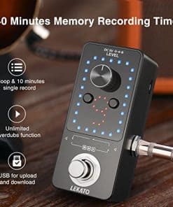 1. 9 bucles, con una única grabación de bucle de hasta 10 minutos de duración por grabación individual, el tiempo total de grabación es de 40 minutos. 2. Tasa de muestreo de 48K/24 bits, calidad de tono profesional sin pérdidas, sin comprimir, looper con audio de alta calidad, el indicador visual de tiempo es excelente. 3. Función de afinación de alta sensibilidad integrada. Conmutación continua, no causará interrupciones discordantes entre las frases. La operación de un solo botón ajusta el volumen de reproducción del bucle. 4. Importar/Exportar la música hacia/desde la PC fácilmente con USB para cargar/descargar archivos de bucle wav, conectando pedal externo, no necesita controlador. 5. Bucle claro con overdubbing ilimitado. Grabar, Deshacer/Rehacer, Detener y Borrar se acceden mediante diferentes comandos de pie con un botón.