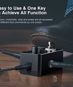 Cómo usarlo: Cuando el pedal esté enchufado y conectado, presionar el interruptor de pie una vez para comenzar a grabar el bucle. Presiones una vez para grabar, presione una vez más para reproducir el bucle. Presione una vez para agregar otra capa de sonidos, que puede repetir hasta quedarse sin ideas. Puede hacer esto tantas veces como desee agregando capas a la pista. Incluso puede Deshacer o Rehacer una capa, presione dos veces para detener, o presione y mantenga presionado para borrar el bucle.