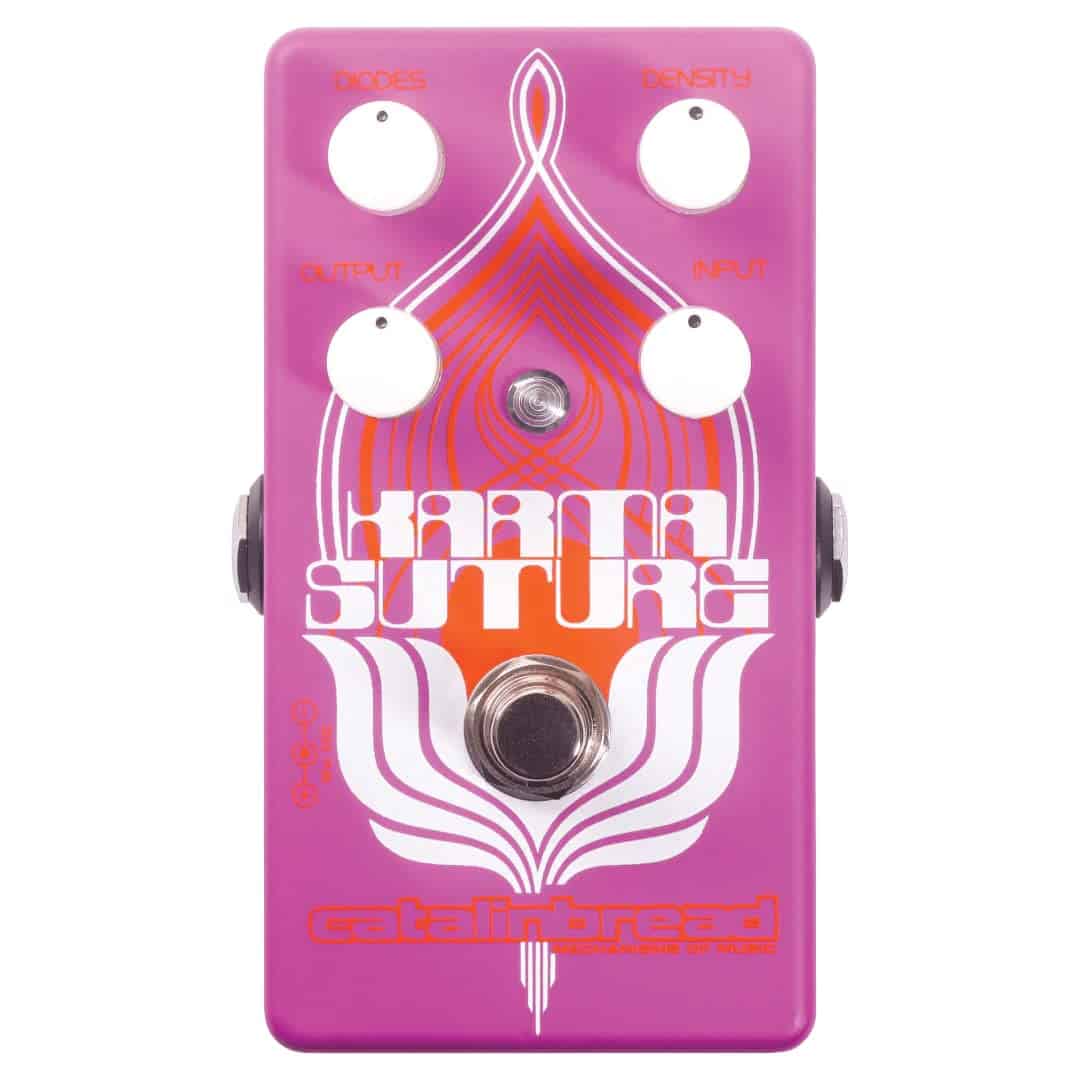 Encontrarás que el Karma Suture tiene el potencial de mejorar tu pedalera de varias maneras. Úsalo como un increíble fuzz. Úsalo como un impulso de armónicos después de una sobremarcha para que esa parte se destaque en la mezcla. Úsalo como tu único pedal de sobremarcha. Úsalo para darle nueva vida a tus wahs, fasers y otros efectos. Puede ser sutil. O puede ser excesivo.
