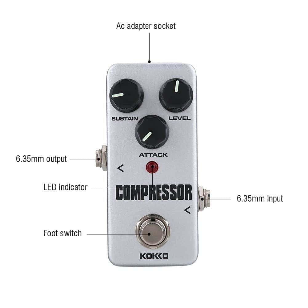 El Pedal de Efecto para Guitarra está hecho de carcasa de aleación de aluminio, para uso prolongado, circuito completamente analógico y diseño de bypass verdadero, proporcionando un tono transparente, el indicador LED muestra el estado de funcionamiento.