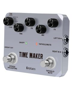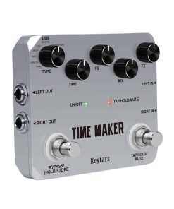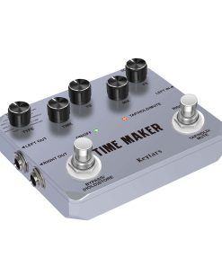 Keytars es un vendedor de fabricación profesional que vende pedales de efectos para guitarra, pedales de loop y otras piezas de instrumentos. Keytars se compromete a desarrollar productos de alta calidad y ayudar a todos los amantes de la música a crear su propio tono. Si recibe productos insatisfactorios, no dude en contactarnos para obtener soluciones. Especificaciones: Entrada: Dos jacks de 1/4 (Impedancia: 470k Ohmios) Salida: Dos jacks de 1/4 (Impedancia: 100 Ohmios) Tasa de muestreo: 44.1K Precisión de muestreo: 24 bits 105 dB de rango dinámico Corriente de funcionamiento: 165 mA Fuente de alimentación: Adaptador de CA de 9V (punta positiva) Dimensiones: 116mm (D) 90mm (W) 35mm (H) Peso: 522g (con caja) Aleación de aluminio completa, clásica, estable y resistente. Nota: el adaptador de corriente no está incluido. Precauciones: Entorno: 1. No use el pedal en ambientes de alta temperatura, alta humedad o bajos cero. 2. No use el pedal a la luz directa del sol. Por favor, no desmonte el pedal por usted mismo. Guarde el manual para futuras referencias. Paquete incluido: 1 x Pedal de Efecto para Bajo Guitarra Time Maker 1 x Manual del Usuario