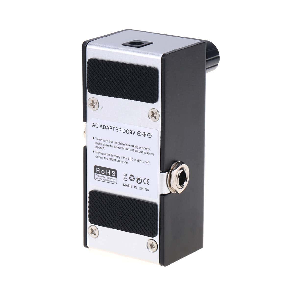1. Este pedal necesitará un suministro de energía DC 9V compatible y cualquier cable asociado (centro positivo, negativo) para funcionar. Tenga en cuenta que el suministro de energía y cualquier cable asociado no están incluidos. Por favor ignore la etiqueta de aviso redundante relacionada con la batería en el artículo que se incluyó por error. Esta unidad no acepta pilas.