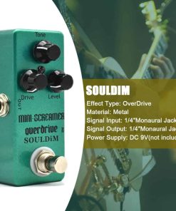 El Pedal de Efecto SoulDiM Mini Screamer Overdrive para Guitarra te ofrece un overdrive y boost suaves y naturales con perillas de control de Drive, Level y Tone para ajustar el sonido a tu gusto. Su cuerpo de aleación de aluminio lo hace seguro para transportar, estable y resistente. El efecto de overdrive es mellow, mild, smooth y con un sustain agradable, simplemente exquisito! Este pedal pequeño y ligero es perfecto para llevar tu música contigo a conciertos al aire libre. ¡Potencia tu música con este pedal de overdrive compacto y potente!