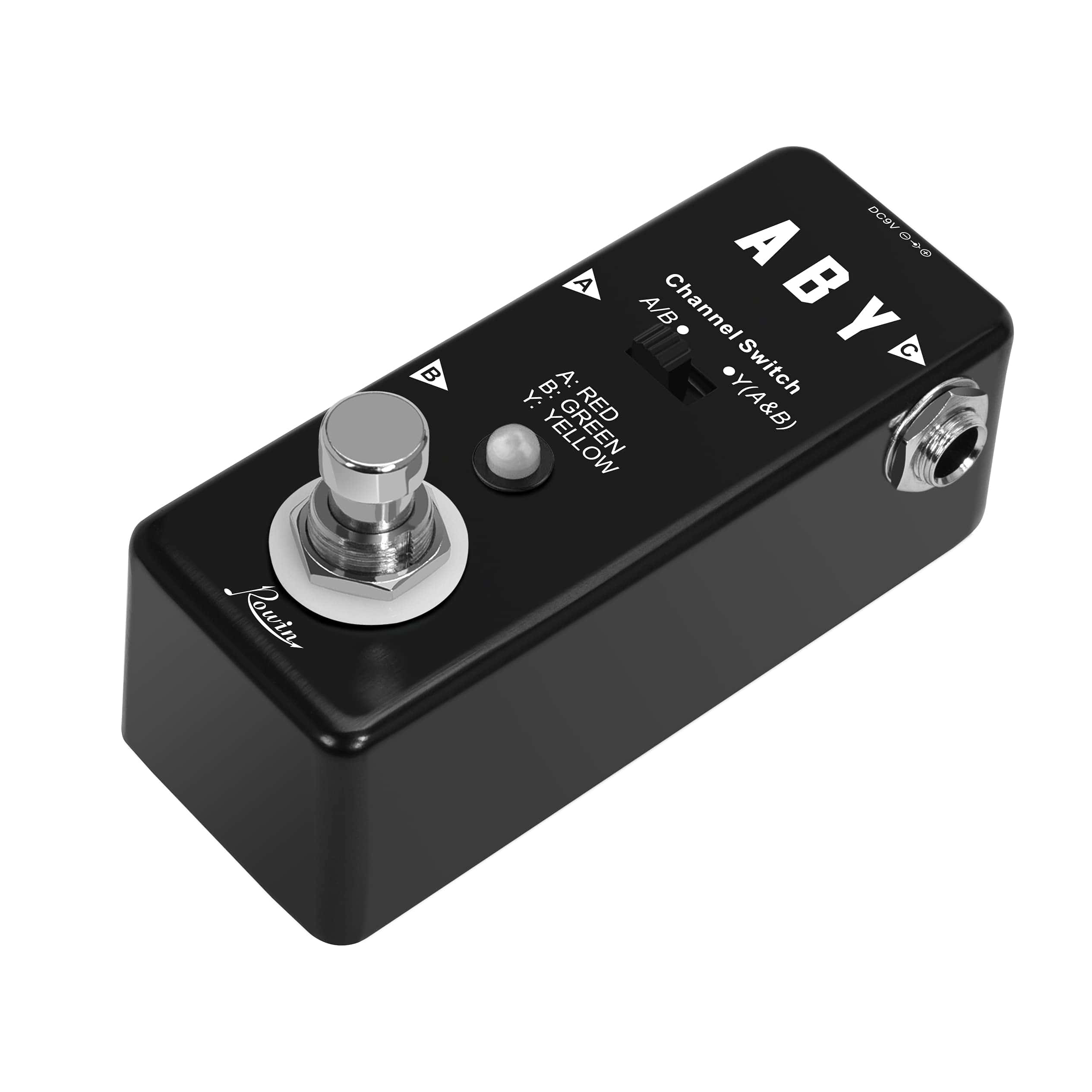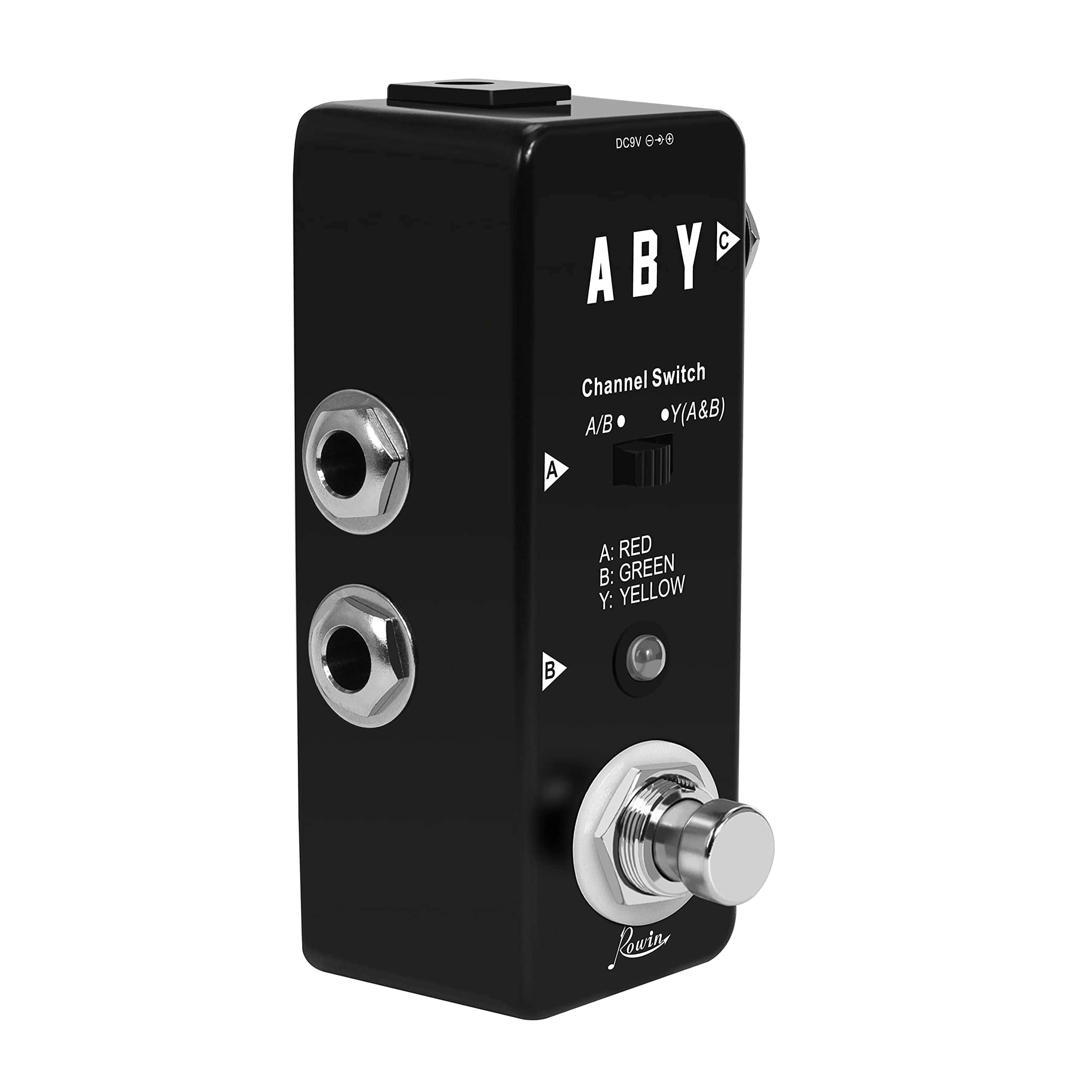 Lea antes de comprar: Tenga en cuenta que el footswitch solo se utiliza en modo ‘A o B’. Para dividir su señal en un modo A + B, necesitará utilizar el pequeño interruptor deslizante que no puede activar con su pie. Acerca del Pedal ABY Rowin: Amplíe la versatilidad de su configuración, cambie entre amplificadores o combine dos señales con este pedal ABY. Con su tamaño notablemente más pequeño y la funcionalidad completa de una solución ABY de tamaño completo, el pedal ABY pasivo de Rowin ofrece flexibilidad de rendimiento completa en la situación de rendimiento. Para ayudarle a ejecutar su instrumento a través de dos amplificadores simultáneamente o cambiar entre ellos fácil y rápidamente. Características: Caja de metal completa, duradera y exquisita. LED A/B: Indica el canal A o B del micro ABY. El canal A corresponde al LED rojo. El canal B corresponde al LED verde. Tanto A como B corresponden al LED amarillo. Conector A: Jack de audio mono de 1/4″ para conectar instrumentos. Conector B: Jack de audio mono de 1/4″ para conectar instrumentos. Conector Y: Jack de audio mono de 1/4″ para conectar instrumentos. Presione el interruptor de pie para alternar entre los canales A y B. Especificaciones: Efecto: Selector de línea. Material: Aleación de aluminio. Fuente de alimentación: Adaptador de corriente alterna 9V DC (no incluido). Tamaño del artículo: 9 x 3.8 x 4.8 cm. Peso del artículo: 137 g. Tamaño del paquete: 12 x 7 x 6.5 cm. Peso del paquete: 230 g. Lista de productos: 1 pedal de efecto para guitarra, 1 manual de usuario (inglés y chino).