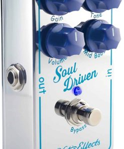 Pedal de Efectos de Boost & Overdrive Soul Driven. Soul Driven agrega alma a tu sonido al producir tonos cremosos de impulso y overdrive con la cantidad justa de compresión. El pedal está equipado con opciones increíblemente flexibles de modelado de tono para ayudar a personalizar tu sonido mientras se preserva el tono de tu guitarra. La perilla de impulso central empuja las frecuencias de rango medio creando dinámicas ricas y la perilla de tono (no es un circuito de tono común) se puede ajustar desde un extremo apretado hasta altos confrontativos. Soul Driven te ayudará a encontrar el punto ideal cada vez. Aprieta aún más tu tono accediendo al interruptor de Bass Boost que se puede acceder quitando la tapa trasera. Destácate en la mezcla agregando hasta +6dB @ 125Hz para tonos de impulso y overdrive más gruesos.