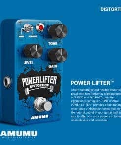 AMUMU POWER LIFTER es un pedal de distorsión totalmente hecho a mano y flexible con dos opciones de recorte de frecuencia de SHRED y DYNAMIC, además del control de TONO ingeniosamente configurado, POWER LIFTER proporciona una afinación rápida y una amplia gama de tonos de distorsión que realzan el sonido natural de tu guitarra y amplificador para ofrecerte más opciones de tonos al tocar y grabar.