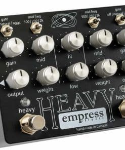 Pedal de Efectos de Distorsión de Doble Canal Heavy para Guitarra. En esta caja adecuadamente nombrada encontrarás una amplia gama de tonos de alta ganancia asesinos. Desde metal crujiente de los años 80, hasta brutalidad moderna y afinada hacia abajo, ¡esta pequeña caja de caos sonoro lo hace todo! Los dos canales independientes se pueden ajustar de manera similar para que un canal se pueda usar como un impulso para solos, o se pueden ajustar completamente diferentes mediante el uso del control de rango medio en conjunto con el interruptor de selección de frecuencia media de 3 posiciones. Agrega controles de peso separados para dar forma a la respuesta de extremo bajo de cada canal, y una sección de ecualización global de altos y bajos que te permite ajustar finamente tu combinación de amplificador y bafle en particular, y tendrás una herramienta seria para crear un sonido extremadamente pesado. ¡Además de todo esto, Empress agregó una puerta de ruido extremadamente receptiva y libre de problemas que garantizará una operación completamente silenciosa incluso con las cantidades más obscenas de ganancia añadida!