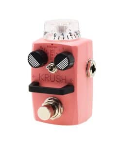 KRUSH es un pedal de tamaño compacto de bitcrusher/Sample rate reducer. Este pedal cuenta con un downsampler digital variable, flexible y dulce con 3 modos diferentes: simulador de radio, modo neutral y simulador de fonógrafo vintage. Cada modo degrada la señal original de una manera muy musical. Características: Tasa de Muestreo: 750-44100Hz Profundidad de Bits: 5-16bits Pedal de Bypass Verdadero Cubierta Exterior de Aleación de Zinc Perilla superior transparente y 2 perillas pequenas noctilucentes Luces LED Geniales Consumo de Corriente: 60mA Dimensiones: 74mm (D) x 44mm (W) x 44mm (H) Peso: 190g