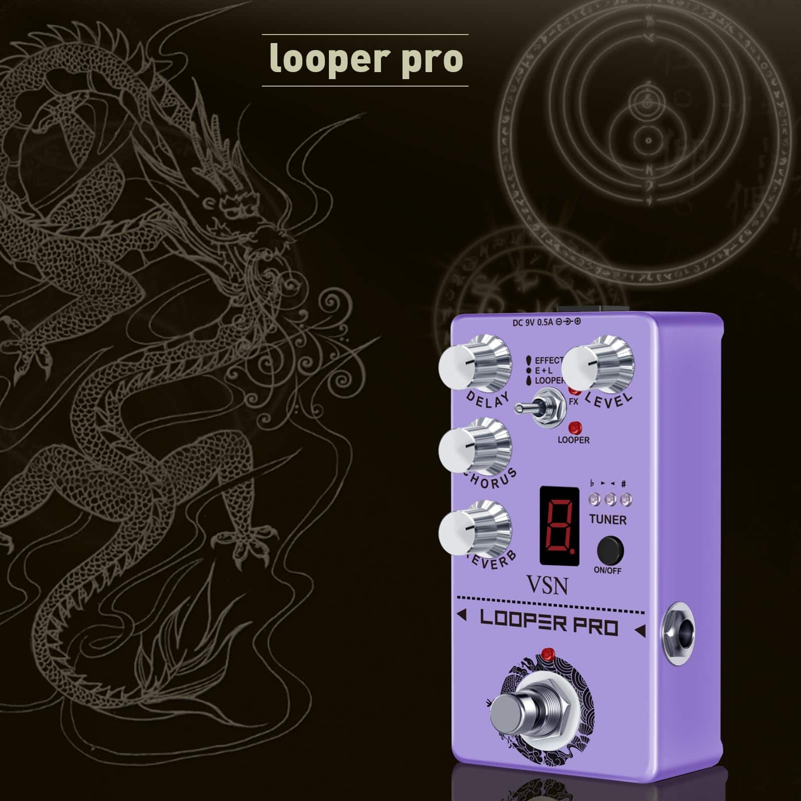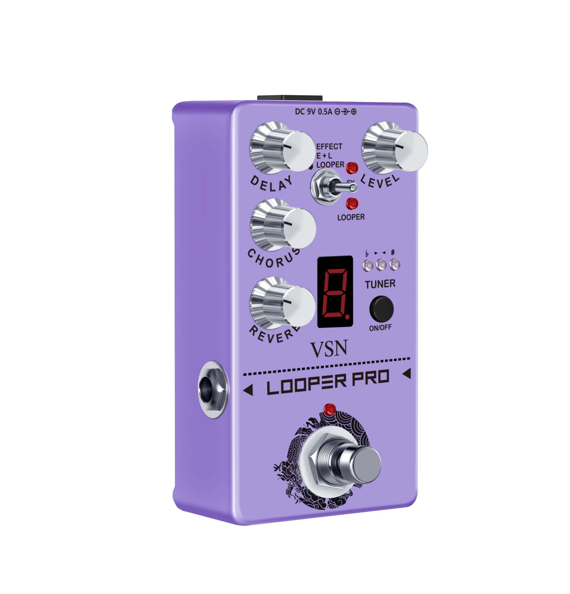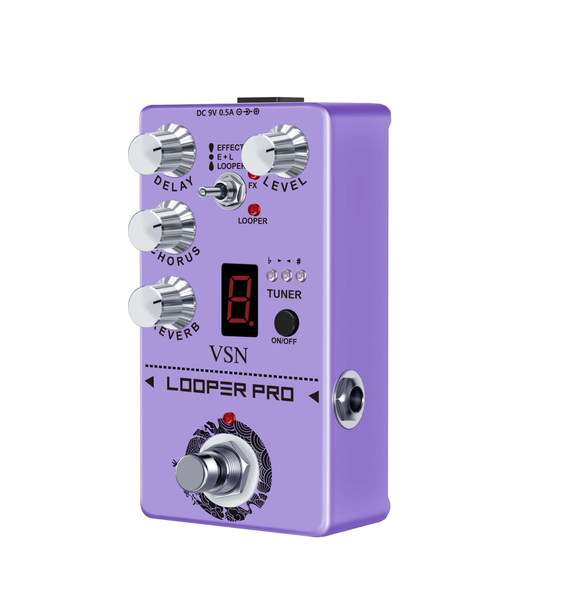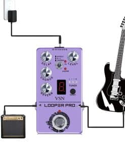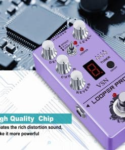 El Looper Pro VSN RE-05 es el último pedal desarrollado por nuestra compañía, una combinación de Looper, Delay, Reverb, Chorus, Afinador en un solo pedal. Su efecto Looper se destaca por su diseño simple y funciones como bypass, simulación seca y alta calidad de audio. Con un tiempo de loop de 40 segundos y capacidades de deshacer/rehacer ilimitadas, el Circulator es la combinación perfecta de calidad, creatividad y simplicidad. El efecto de chorus tiene un sonido puro, claro y transparente que es fresco y natural. El delay ofrece un sonido cálido, limpio y suave con tiempos ajustables de 20ms a 620ms para una amplia gama de estilos musicales. La reverberación añade atmósfera a tu sonido. El afinador cromático para guitarra tiene una pantalla LED de lujo para resultados claros. ¡Disfruta de tu vida musical con diversión y colorido!