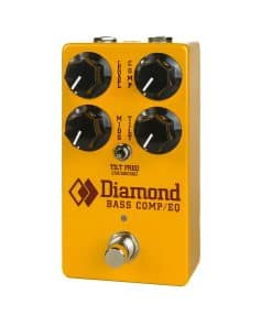Hay algo verdaderamente mágico en encontrar el punto dulce de compresión en el bajo. Entra en escena el Diamond Bass COMP/EQ. Este pedazo de equipo irá en tu pedalera y nunca saldrá. Este compresor de próxima generación mantiene la arquitectura del circuito clásico al tiempo que aumenta el rango y la funcionalidad. La nueva sección de EQ te permite esculpir tu tono en la misma caja que lo aplasta (y eso es algo bueno). Además, el interruptor tilt te permite pasar desde el estilo icónico de compresión ultra rápida de Diamond hasta una compresión transparente más suave. Características principales – Compresión óptica naturalmente suave de un Opto-Isolador personalizado fabricado en EE. UU. – Impulso y corte de medios – Ecualizador Tilt EQ con frecuencia de pivote seleccionable que abarca 250, 500 y 900 Hz +|- 6dB – Control de compresión de amplio rango e interruptor de ataque con indicador LED – Tomas montadas en la parte superior y conmutación de relé táctil suave – Circuitos integrados Burr Brown. Qué palabra de moda es la compresión. Pero tan pronto como la colocas en tu cadena, no puedes retroceder. Aplicable en casi todas las situaciones, la compresión es el pegamento que mantiene tu tono apretado y en su lugar. Si bien el Compresor original de Diamond era un pedal formidable, podemos afirmar con confianza que esta siguiente generación es la mejor versión del Compresor de Diamond hasta ahora. Estamos hablando en serio cuando decimos que este pedal siempre estará activado. Ya sea que estés buscando la compresión más instantánea para complementar tus intrincados leads de funk, o una compresión suave y transparente para simplemente agregar ese toque final perfecto a tu tono, el Diamond Comp/EQ puede hacerlo todo. Así es como se usa tu nuevo pedal siempre activado . Coloca el Comp/EQ al principio de tu cadena de señal para un efecto de compresión tradicional, o colócalo al final de la cadena para que actúe como limitador. ¿Necesitas un impulso Coloca el Comp/EQ detrás de tus distorsiones y fuzzes con el Comp ajustado bajo para que tus leads se eleven!