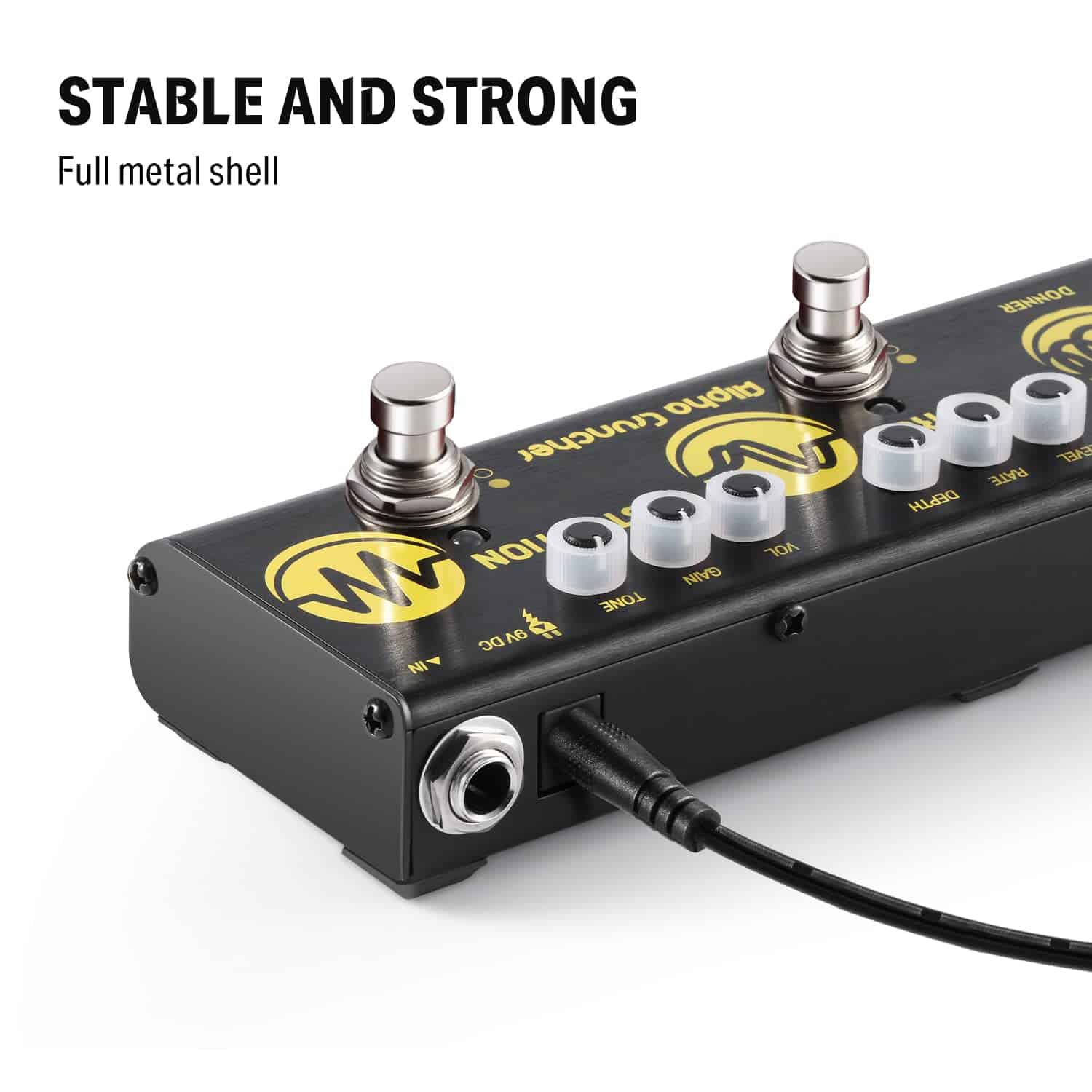 5. Diseño Avanzado: La carcasa de aleación de aluminio del pedal de guitarra es tan resistente y duradera que se convierte en tu fiel compañero de guitarra.
