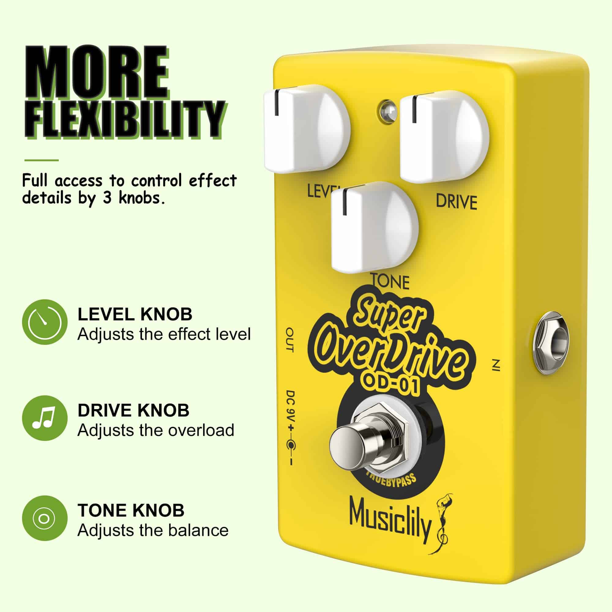 ¿Por qué los guitarristas juran por los pedales de guitarra Musiclily? Porque es un elegante efecto de guitarra de super overdrive con componentes electrónicos de alta calidad y circuitos, que te ofrecen una distorsión suave y clara.