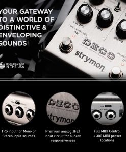 1. CALIDEZ VINTAGE DE CINTA: Experimenta la rica saturación y calidez de cinta escuchada en grabaciones clásicas de los años 50 y 60 con Deco, el pedal de guitarra de cinta definitivo. Deco crea una lujosa compresión de cinta, saturación y efectos basados en el tiempo, trayendo el sonido vintage del pasado a tu configuración de guitarra moderna. 2. MAESTRO DE LA SATURACIÓN: El lado de Saturación de Deco mejora tu tono con ganancia variable que puede ir desde cálido y suave hasta overdrive completo. La voz Clásica se derivó de las máquinas de masterización de carrete abierto, mientras que la nueva voz de Casete se basa en la característica de Control de Nivel Automático (ALC) que tenían algunas grabadoras de casete de gama alta en los años 70, proporcionando un tono dinámico y gordo con compresión incorporada. 3. REVIVAL DE ESTUDIO VINTAGE: El lado Doubletracker opera como dos grabadoras de cinta en serie, logrando flanging, fase, coro, slapback y eco vintage hiper auténticos, todo cambiando el desfase entre las grabadoras de Referencia y Retardo a través del control de Tiempo de Retraso. ¡Ningún otro pedal de efectos en el planeta trabaja o suena como Deco!. 4. CONTROL TOTAL MIDI: Sincroniza fácilmente el tiempo de retardo del deck de Retardo con MIDI Clock, usa un pedal de expresión para controlar la mezcla o cambia entre modo Clásico y Casete de forma remota – con 300 ubicaciones preestablecidas para almacenar tus creaciones favoritas, ¡las posibilidades son infinitas!. 5. HARDWARE SUPERIOR: Con un circuito de entrada analógico de Clase A JFET discreto premium, entradas y salidas estéreo, interruptor trasero mono/estéreo, MIDI TRS, USB-C para gestión MIDI y presets y un potente procesador ARM, Deco se construyó para resistir los rigores de la carretera mientras entrega un tono de clase mundial.