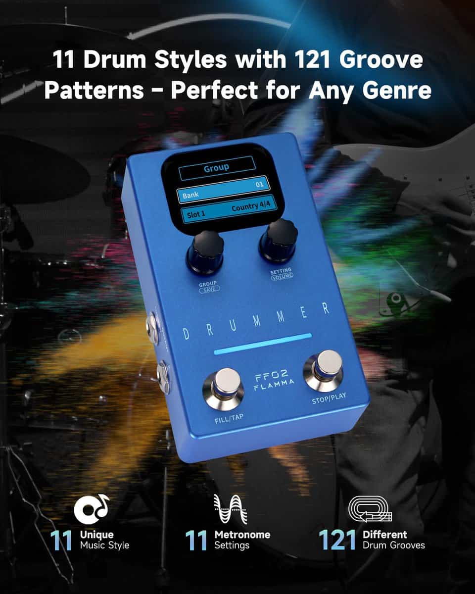 Pedal de Guitarra FLAMMA FF02 Drum Machine – 121 Ritmos de