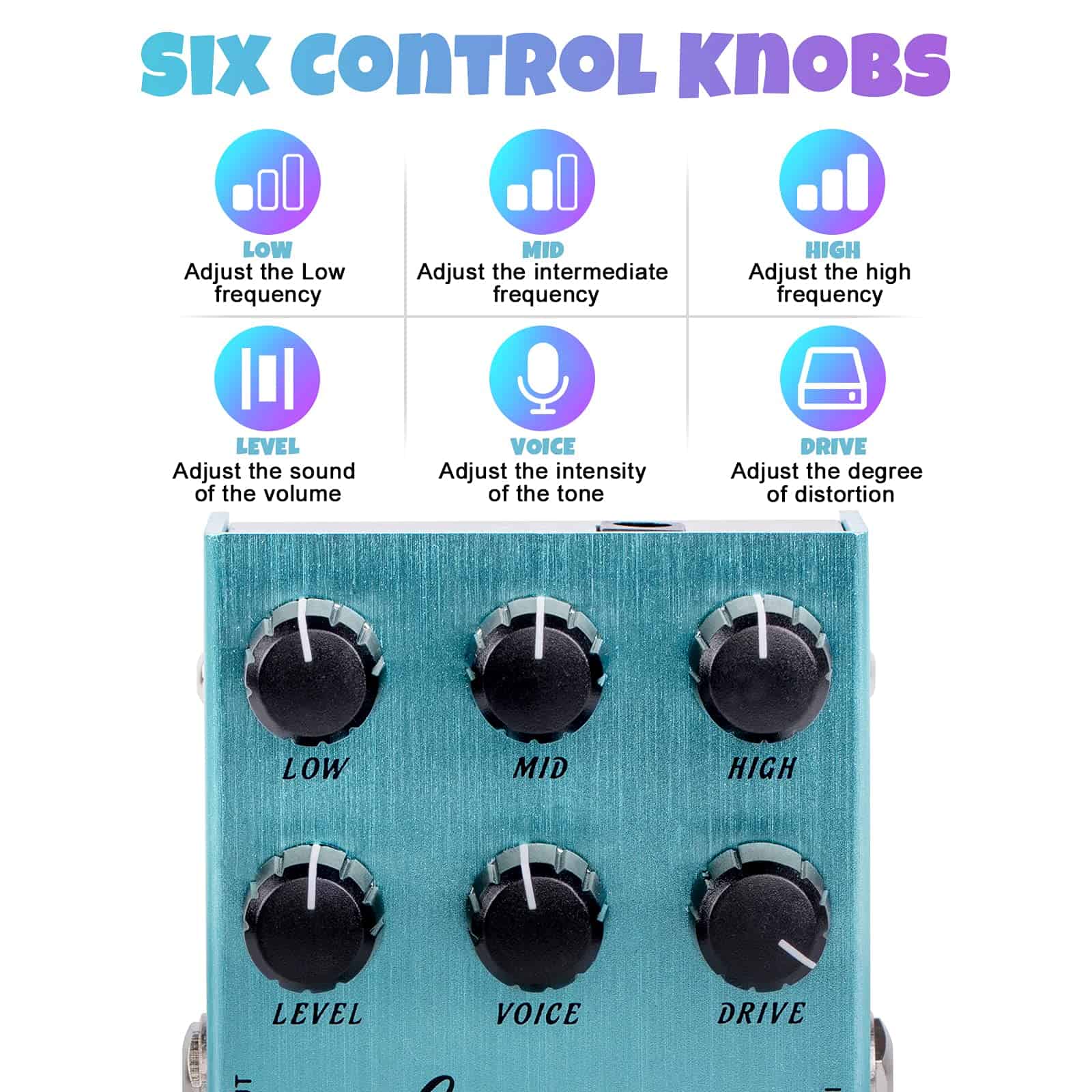 1. Fácil de Transportar: Alimentado por un adaptador DC 9V (no incluido en este paquete), este pedal de Distorsión tiene un cuerpo de tamaño pequeño, peso ligero, adecuado para conciertos al aire libre.