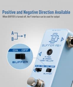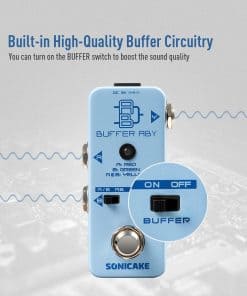 El pedal de guitarra SONICAKE ABY es un conmutador ABI con un interruptor Buffer, diseñado para ofrecer una fácil selección entre A/B y Y, con la posibilidad de activar o desactivar el búfer para mejorar la calidad del sonido. Cuenta con LED indicador de estado y es compatible con alimentación de 9V. Ideal para músicos que buscan una solución práctica y versátil para sus efectos de guitarra.