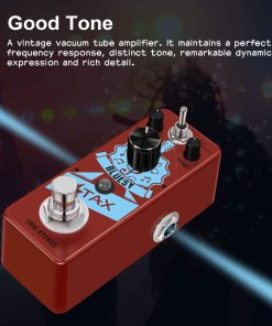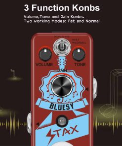 Pedal de Guitarra Stax Bluesy Distortion, un amplificador de tubo vintage. Mantiene una respuesta de frecuencia perfecta, un tono distintivo, una expresión dinámica notable y un detalle rico. 3 Perillas de Función Volumen, Tono y Ganancia. Dos Modos de Funcionamiento: Grueso y Normal. Su caja de metal completo lo hace duradero y resistente, y al igual que la mayoría de los grandes pedales de efectos, tiene derivación verdadera. Características: Marca: Stax Modelo: Distorsión Bluesy Color: Rojo Material: Aleación de Zinc Entrada: Jack mono de 1/4 pulgada (impedancia: 1M Ohms) Salida: Jack mono de 1/4 pulgada (impedancia: 10k Ohms) Fuente de Alimentación: Adaptador de corriente alterna 9V CC (Adaptador no incluido) Tamaño del Artículo: 9.5 x 3.8 x 5.2 cm 3.7 x 1.5 x 2 pulgadas Peso del Artículo: 248g 8.8 oz Luz LED El indicador LED muestra el estado de funcionamiento. Verdadera Derivación Derivación verdadera para cero coloración de tono. Fabricado en aleación de zinc de alta calidad con una construcción súper sólida. Paquete incluido: 1 x Pedal de Efecto de Guitarra de Distorsión Stax Bluesy 1 x Manual del Usuario 1 x Caja de Embalaje