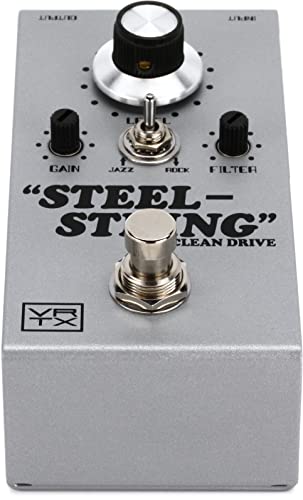 El Steel String MkII es simple en su operación y sin igual en su mojo de raíces. Con configuraciones de ganancia por debajo de 1:00, el Steel String Clean Drive MkII hace un impulso limpio increíblemente versátil, con un control de filtro para ajustar cuánto de esa forma de mediados en estilo D demanda su instrumento. Por encima de 1:00, el Steel String Clean Drive MkII comienza a endulzar su señal con características de drive maduradas al sol de California. Totalmente abierto, este pedal prácticamente respira fuego, con suficiente ganancia jugosa para llevarte desde Flavor Town hasta Brown County. La operación opcional de 18 voltios (adaptador no incluido) te brinda cubetas de aumento de headroom perfecto para grabaciones de estudio o para emparejar este pedal con un amplificador vintage. Mientras tanto, la operación de bypass real preserva su señal seca siempre que no tenga el Steel String MkII activado, lo cual, si eres como los probadores de Sweetwater, es prácticamente un no problema, ya que nunca querrás apagar esta cosa. El Vertex Steel String MkII se ensambla en California y viene en un resistente recinto de metal cepillado con un auténtico botón de nivel en estilo D.