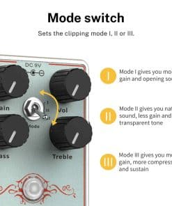 3. Tres modos prácticos: El pedal de overdrive para guitarra Dumbal también ofrece un interruptor selector de modo para permitir más dinámica que va desde tonos suaves hasta un sonido brillante y chispeante; La señal puede ser transmitida en tres modos diferentes para satisfacer diversas necesidades al tocar.