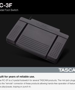 Pedal de pie de 3 vías Tascam RC3F diseñado para ser utilizado con los grabadores y reproductores TASCAM GB-10, LR-10, DP-03 y otros modelos compatibles. Este pedal de pie ofrece la conveniencia de controlar funciones como reproducir/pausar, hacer bucles o realizar grabaciones con solo presionar un pedal. Con tres pedales de pie y un cable de 12.8 pies con conectores TRS de 2.5 mm, este pedal de pie es una herramienta esencial para los músicos y productores que trabajan con equipos TASCAM. Funciona con 2 pilas AA para una fácil portabilidad y uso sin necesidad de cables.