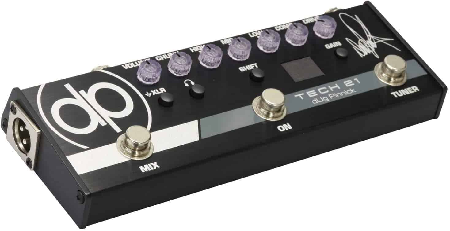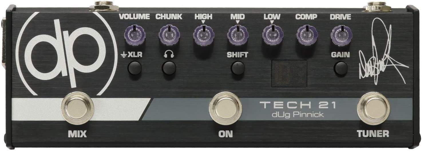 Una adaptación súper compacta de su cabeza Signature Tech 21 Ultra Bass 1000, el DP-3X también recrea el sonido que dUg desarrolló originalmente en los años 80, fusionando distorsión de alta gama con graves profundos. Antes de su cabeza Signature, esto implicaba ejecutar un amplificador de guitarra y un amplificador de bajo juntos, junto con un rack lleno de efectos. Queriendo simplificar aún más su equipo para ocasiones en las que su equipo completo de Tech 21 simplemente no es práctico, dUg colaboró en el pedal completamente analógico DP-3X. Probando personalmente el DP-3X en una gira europea, dUg encontró una configuración diferente en cada lugar. Pero sin importar qué amplificador estaba en el escenario, dUg podía lograr su inmenso tono noche tras noche.