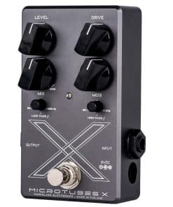 Delivering powerful distorted bass tones with punch and clarity, the Darkglass Microtubes X Bass Preamp Pedal splits your signal into two paths with variable lowpass and highpass filters for customized tone shaping. Includes a mix control to balance clean and distorted signals for optimal sound. Active mid control with 12dB boost at 500Hz offers extensive sound-shaping potential. Drive control adjusts the amount of distortion applied to the high-pass filtered signal. True bypass circuitry maintains signal integrity when the pedal is disengaged. Compact and lightweight design for easy integration into pedalboards. Powered by a standard 9V DC adapter for convenience and compatibility. Equipped with durable build quality for reliable performance on stage and in the studio. Rear-panel XLR DI output for direct recording and connection to PA systems.