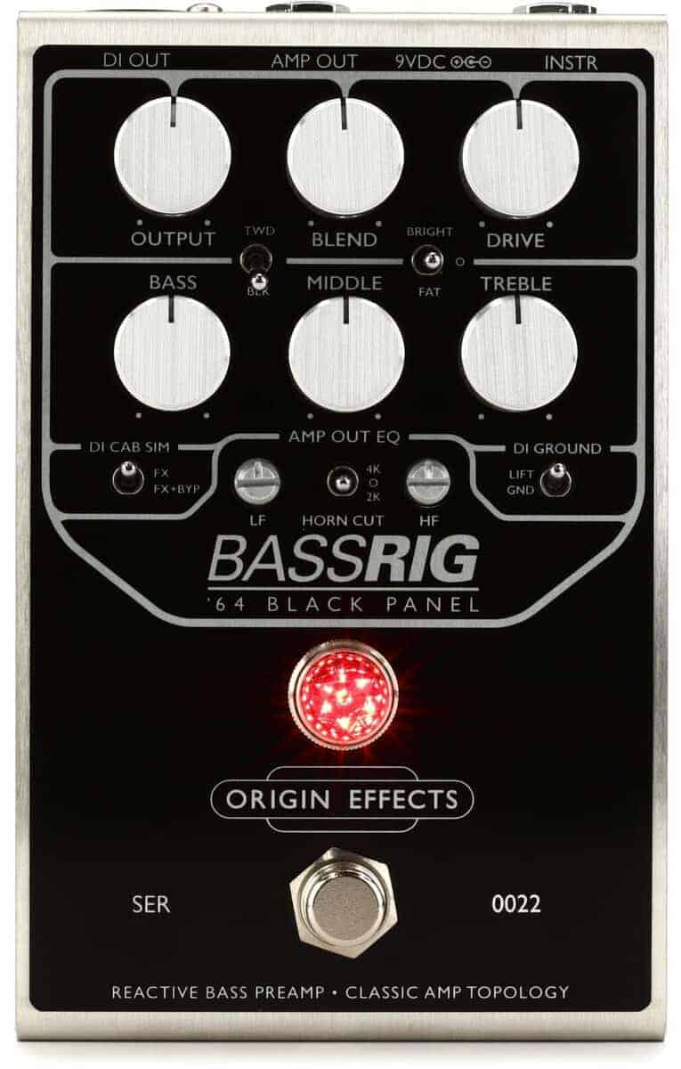 Tu centro de tono bajo estelar en lugar de gastar miles en originales vintage, el pedal de preamplificador para bajo Origin Effects BassRig ’64 Panel Negro facilita y abarata la incorporación del sonido icónico de dos amplificadores Fender en cualquier configuración. Esta recreación analógica de amplificador viene equipada con una amplia gama de controles de formación de tono, con perillas de graves, medios y agudos estándar acentuadas con una sección de EQ de salida del amplificador quirúrgicamente precisa para adaptarse mejor a tu amplificador y cabina. ¿Quieres ir DI? El BassRig ’64 Panel Negro lo tiene cubierto con una sección DI dedicada que cuenta con una salida XLR balanceada para enviar tu tono directamente a una mezcladora o sistema de PA, ¡sin necesidad de amplificador o cabina! Con su sonido vintage y características optimizadas para las demandas de grabación y ejecución actuales, el pedal de preamplificador para bajo Origin Effects BassRig ’64 Panel Negro es una adición valiosa al equipo de cualquier bajista que toque en directo