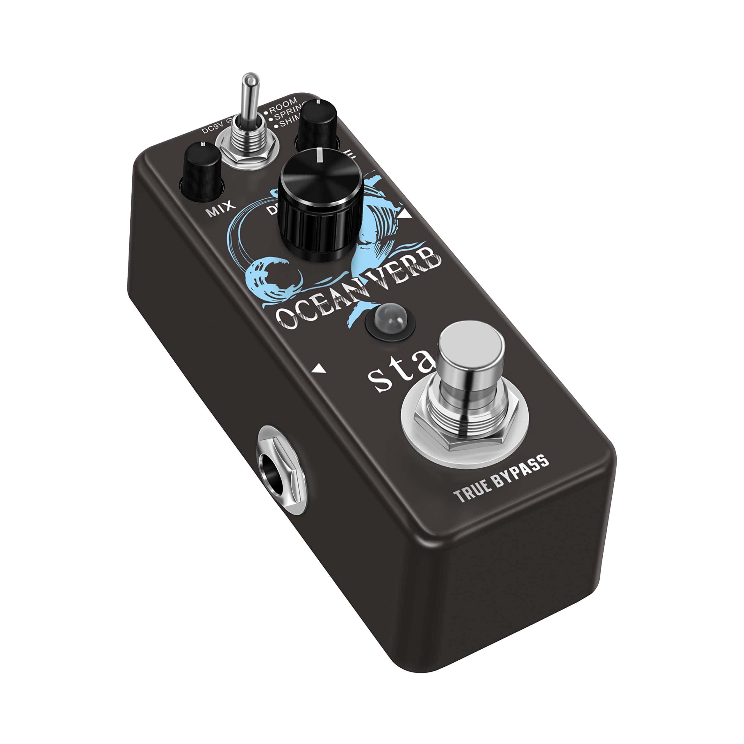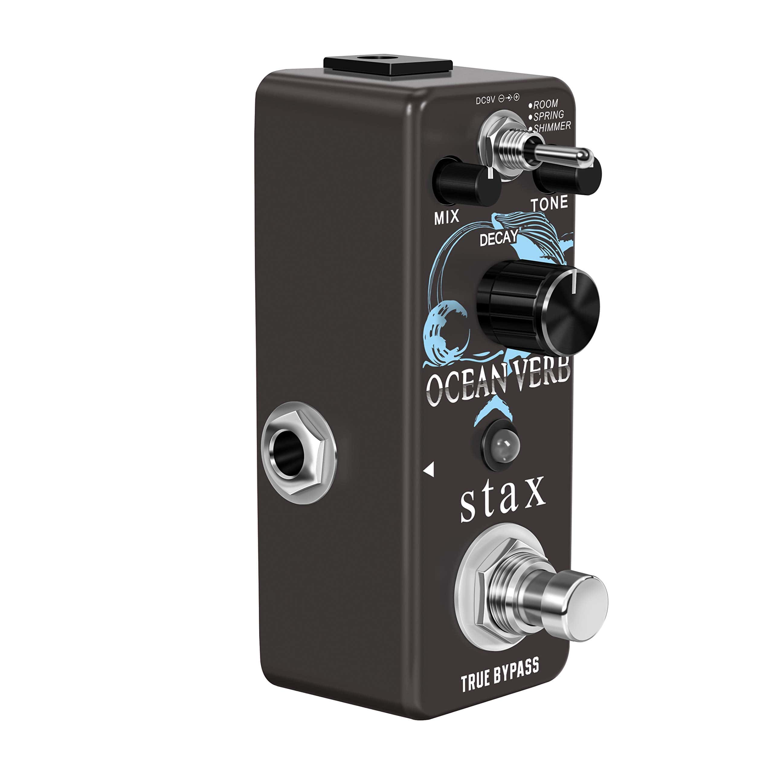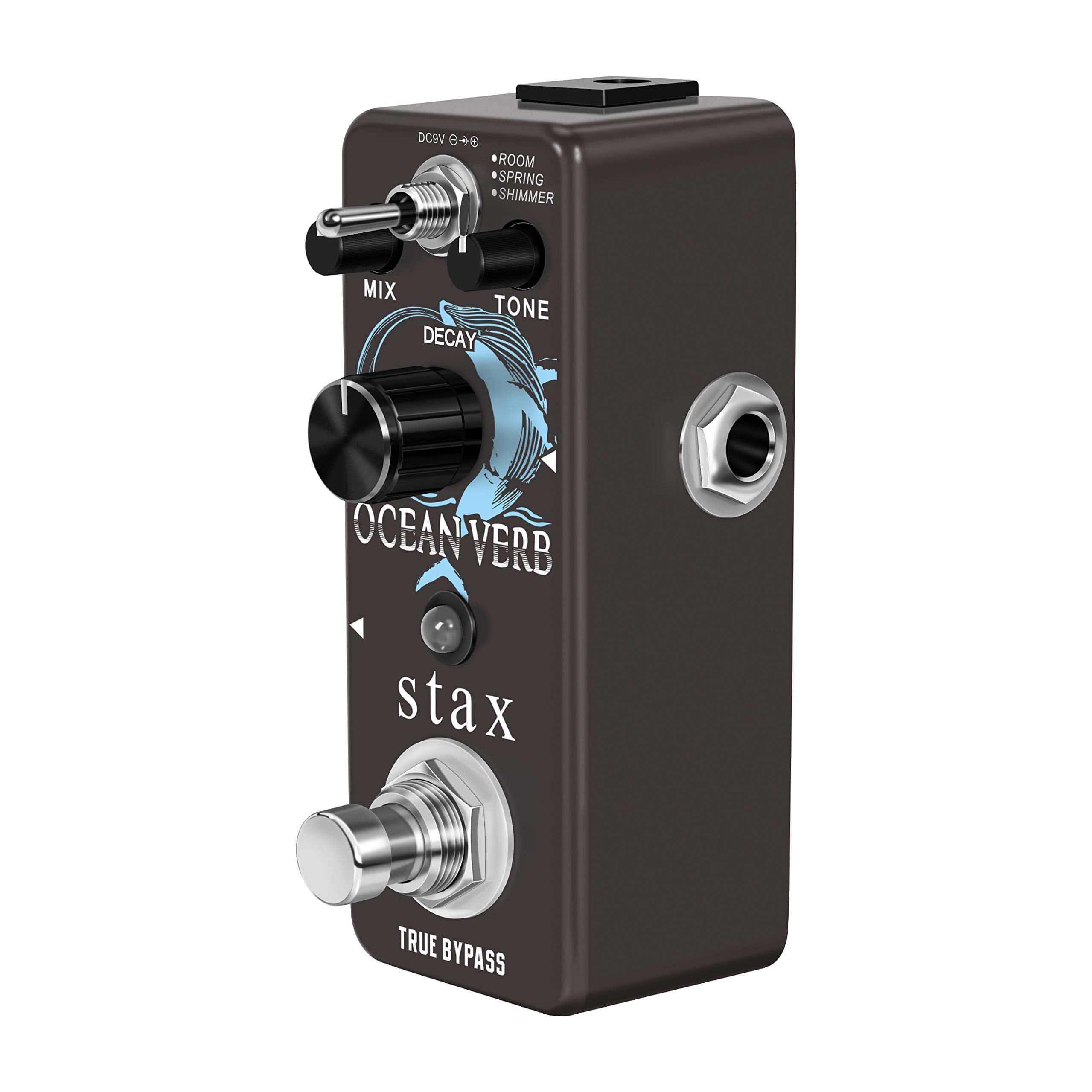 Stax Ocean Verb Pedal 3 Modos de Reverb: Sala, Resorte, Brillo Sala: Reverb acústica verdadera de diferentes tamaños, desde sala hasta salón. Resorte: Simula una reverberación clásica de muelle, sonido vintage del surf de los años 60. Brillo: Agrega ricos armónicos al sonido de reverb, espacial, suave y brillante, muy popular en la música post-rock. Caja de metal de aleación de zinc Muy pequeño y exquisito Bypass verdadero