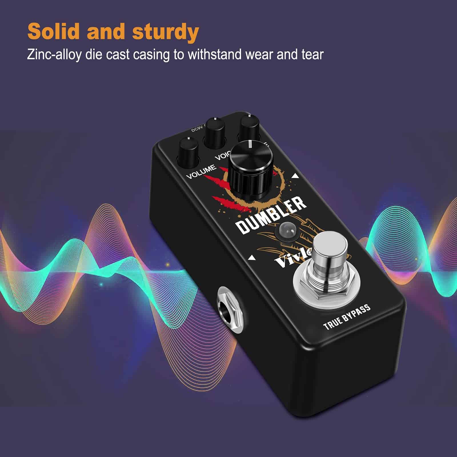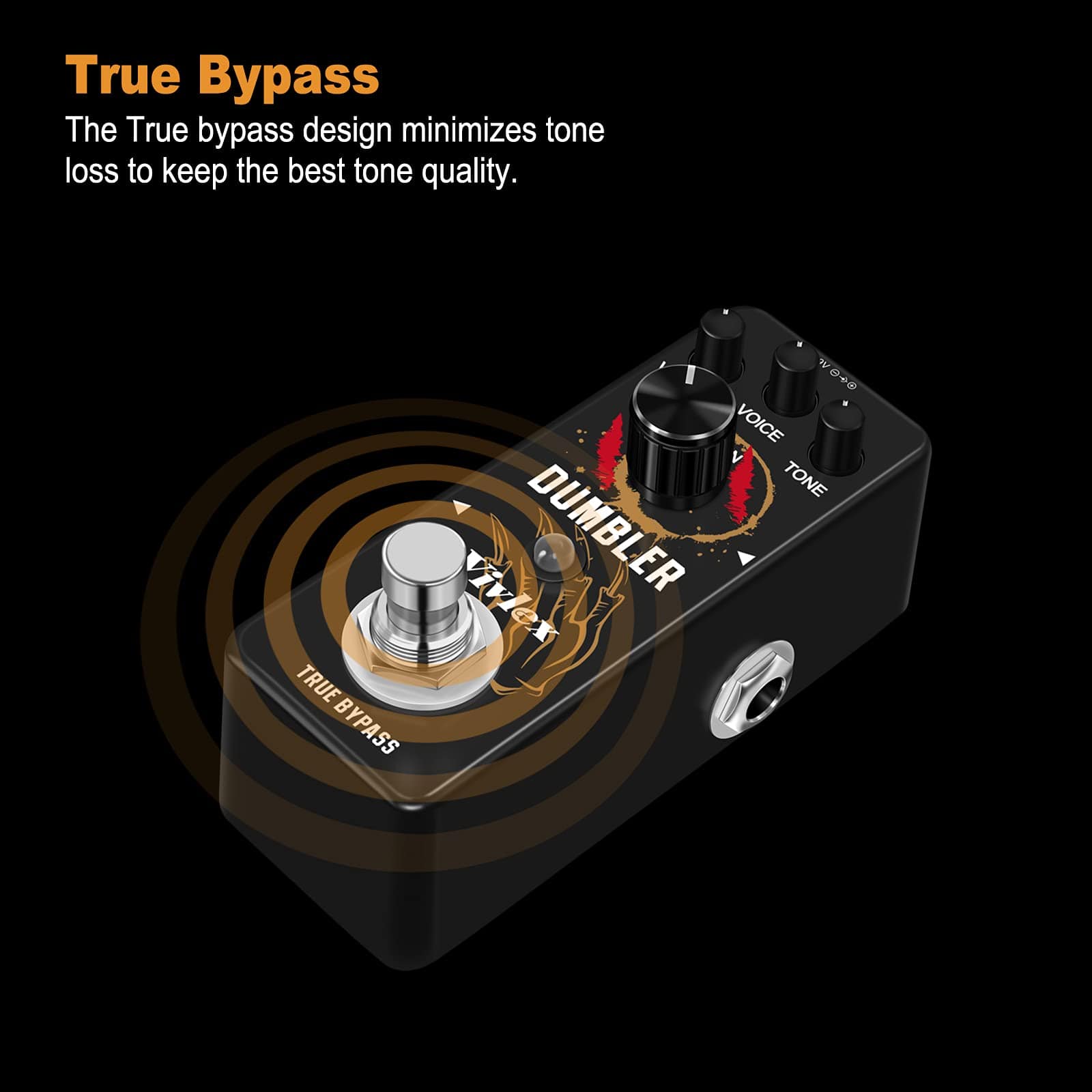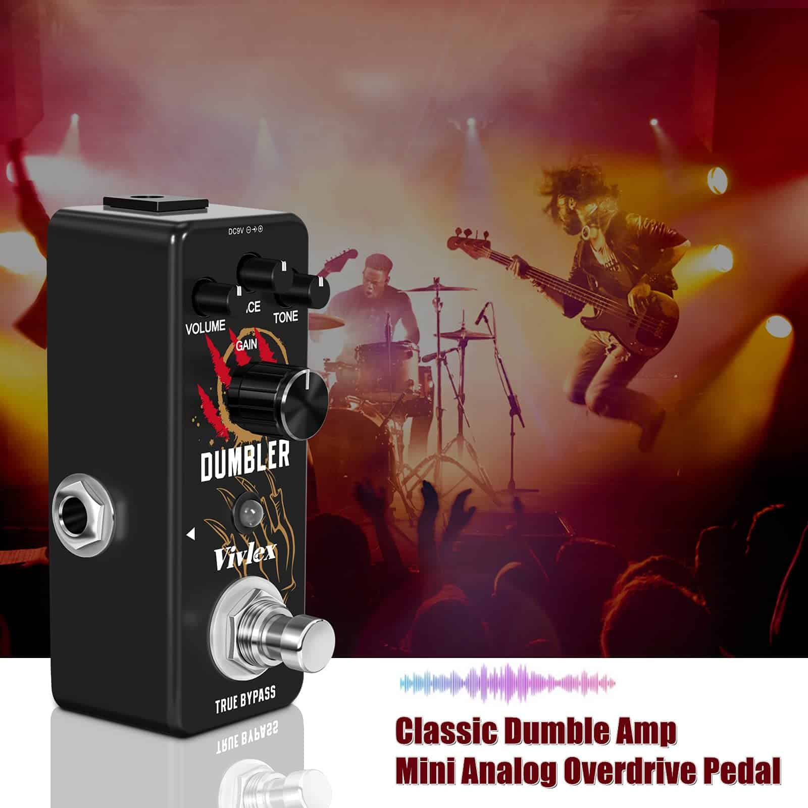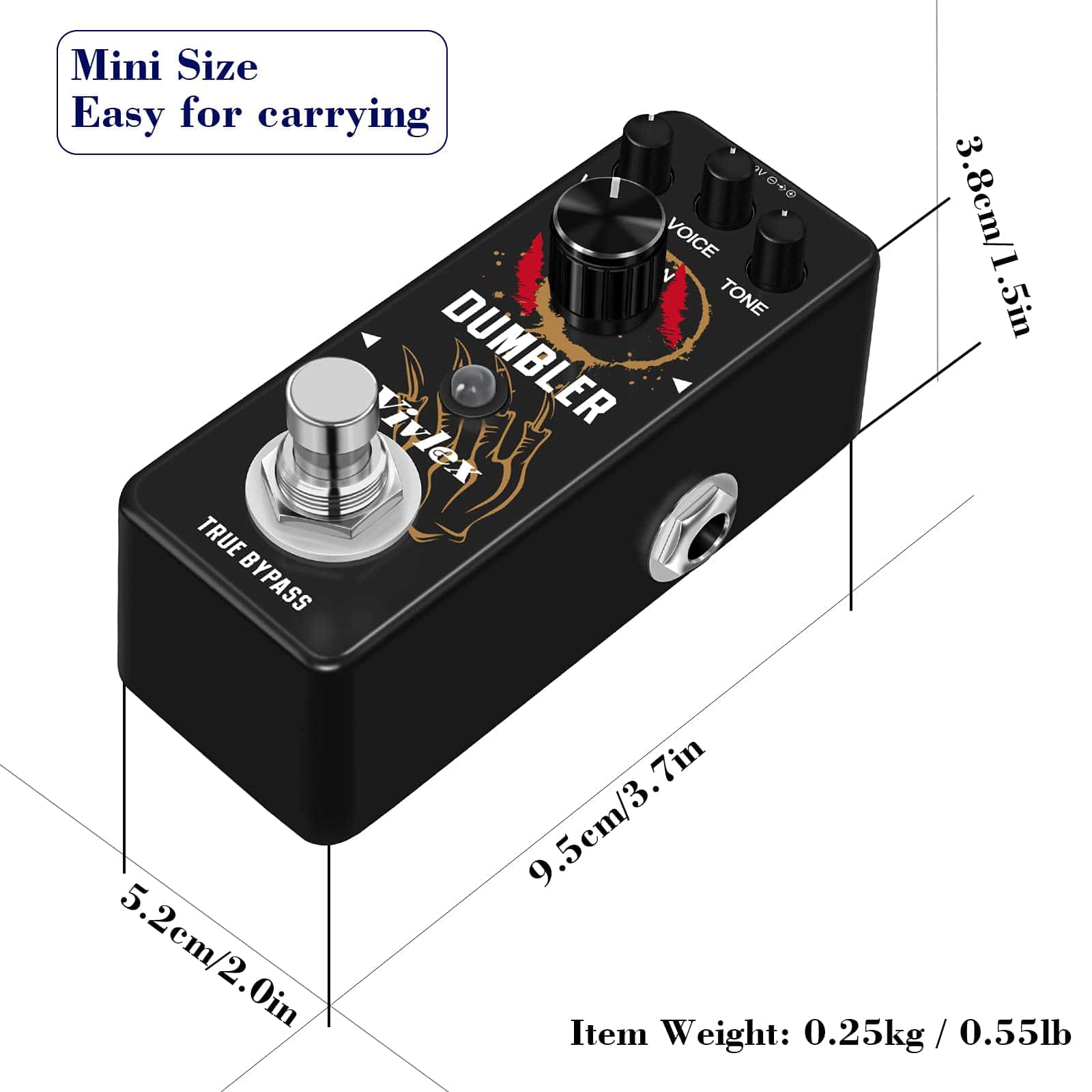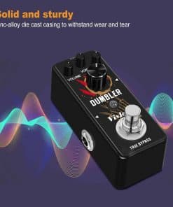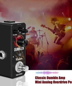 ¿Por qué Elegirnos En la vida de todo guitarrista eléctrico, los pedales de efectos comienzan a ser importantes para el sonido de tu música, si estás buscando algo asequible, versátil y portátil que haga el trabajo y ocupe poco espacio en tu pedalera, entonces el pedal de efectos para guitarra de Vivlex es un compañero imprescindible y perfecto para tocar y disfrutar la vida musical. Está meticulosamente elaborado y alojado en una caja de metal tan pequeña para resistir el uso normal durante mucho tiempo. Encuentra tu voz con Vivlex. Características: El pedal de efectos Vivlex Dumbler es un simulador vintage de amplificador Dumble, que proporciona un sonido clásico e inconfundible de overdrive. Da forma a tu sonido a través de los controles de ganancia, tono y volumen principal; estas funciones proporcionan un control óptimo para el efecto que deseas. Este pedal de gran valor también cuenta con una perilla de Voz, que agrega un mordisco nítido y te permite ajustar el color de tu sonido de overdrive. Excelente pedal de efectos para guitarra con true bypass que proporciona un tono transparente, minimiza la pérdida de tono para mantener la calidad del tono. Diseño compacto de carcasa de metal completo con pequeño tamaño, fácil de transportar. componentes de precisión de alta calidad, 4 perillas para ajuste flexible y libre. Perilla de Volumen: Ajusta el volumen de salida. Perilla de Voz: Ajusta el color del overdrive. Perilla de Tono: Ajusta el brillo. Perilla de Ganancia: Ajusta la ganancia. Especificaciones: Marca: Vivlex Modelo: LEF-315 Efecto: Amplificador Dumble Color: Negro Material: Aleación de Zinc Entrada de Señal: Jack Monaural 1/4 Salida de Señal: Jack Monaural 1/4 Alimentación: Adaptador de corriente alterna 9V CC (Adaptador no incluido) Tamaño del Artículo: 9.5 x 3.8 x 5.2cm Peso del Artículo: 248g Consejos: 1. EL ADAPTADOR DE CORRIENTE NO ESTÁ INCLUIDO. Desenchufa el adaptador de corriente CC cuando no estés usando el producto o durante la tormenta eléctrica.