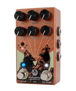 Basándose en la modulación rica, cálida y pulsante del Monument, el Trémolo Armónico Estéreo Monumental es un trémolo óptico analógico que trae nuevos controles, características y amplitud a la línea de Walrus Audio. Las nuevas características disponibles en el Monumental incluyen la capacidad de guardar preajustes, mezclar entre modos de trémolo estándar y armónico, acceso a nuevas opciones de forma de onda y división de tiempo, y lo más importante, un control de paneo para establecer la dispersión estéreo del trémolo a los canales izquierdo y derecho.