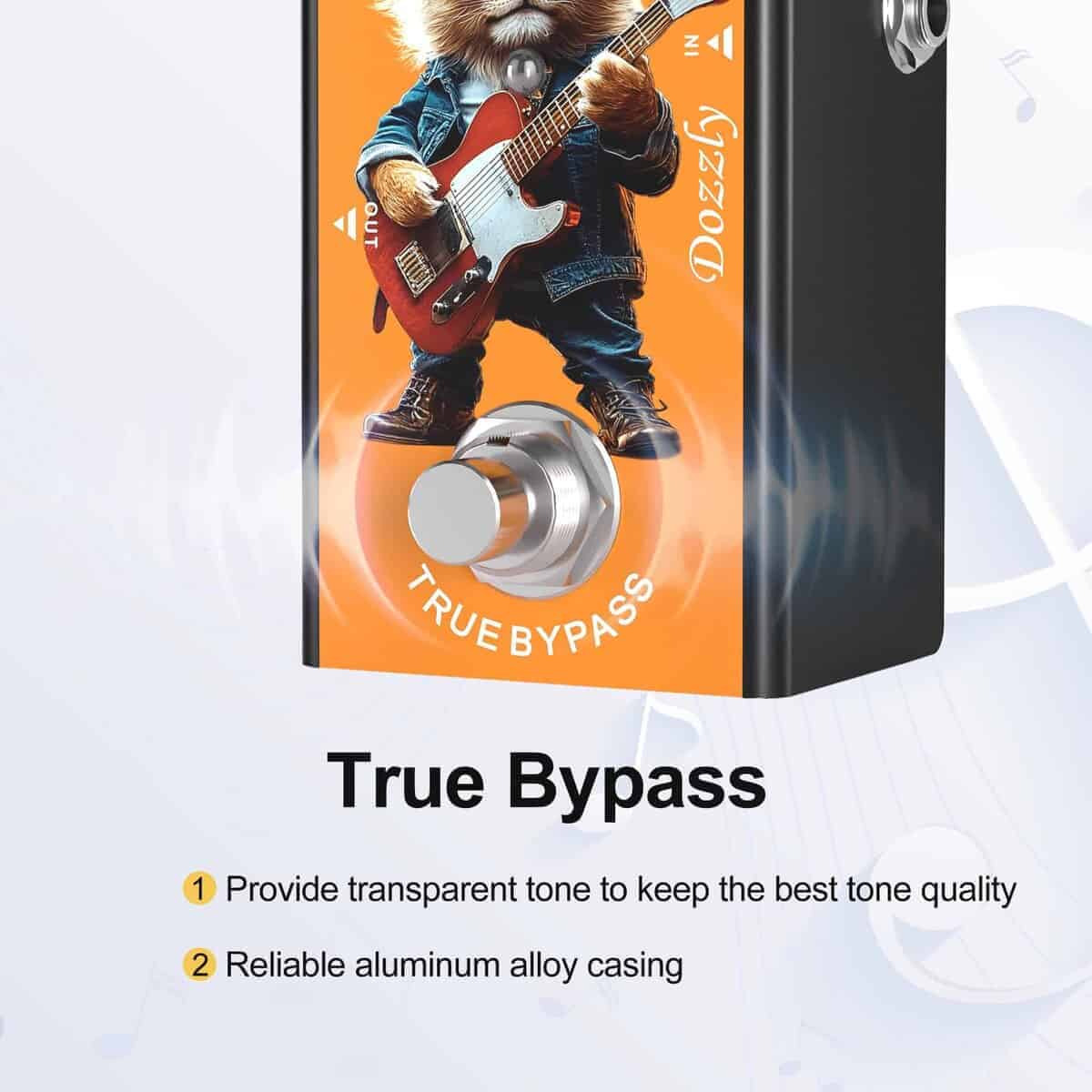 3. Bypass Verdadero: Nuestro pedal de guitarra está construido con circuitos de bypass verdadero, asegurando la máxima integridad de la señal. Esto significa que puedes lograr un sonido prístino sin degradación tonal, perfecto para mantener la esencia del carácter único de tu guitarra.