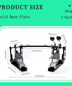 Por último, la base ensanchada y engrosada, junto con la almohadilla de goma antideslizante, proporciona una mayor estabilidad al pedal doble de bombo, asegurando un soporte seguro y firme durante la interpretación.¡Obtén ya tu pedal doble de bombo Vaisoeny y lleva tu capacidad de interpretación al siguiente nivel!