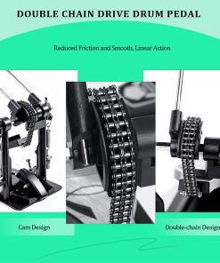 Este pedal de bombo cuenta con una transmisión de doble cadena que mejora la estabilidad y el manejo del pedal, proporcionando una sensibilidad más precisa a la fuerza. Esta característica lo convierte en una excelente opción para bateristas de jazz y entusiastas de la batería electrónica que buscan practicar con pedales de batería.