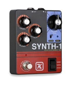 ¡El Synth-1 te permite crear ondas de synth emborronadas! Utiliza los controles de Filtro y Mezcla para combinar tu guitarra con el fuzz del synth. Pasa de lentas mezclas de ataque inverso a sonar como un sable de luz. El Keeley Synth-1 es un generador de onda de una sola nota activado por guitarra. Controla el tono de la onda con el Control de Filtro. El tiempo de entrada o mezcla de la nota se controla con la perilla de Ataque. Luego usa el control de Mezcla para eliminar el tono natural de tu guitarra a medida que te deslizas por ondas de fuzz parecidas a un synth. Utiliza un pedal de expresión para controlar el Filtro, ¡y ahora tienes control similar a un Wah-Wah del Synth-1!