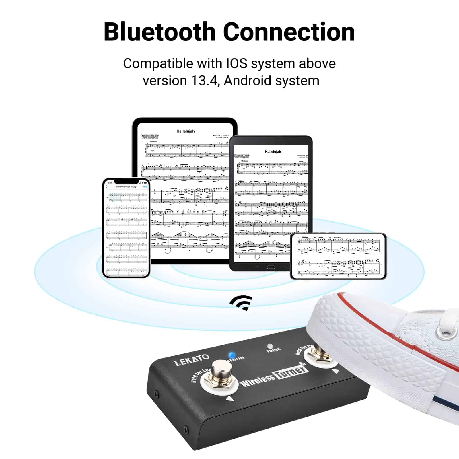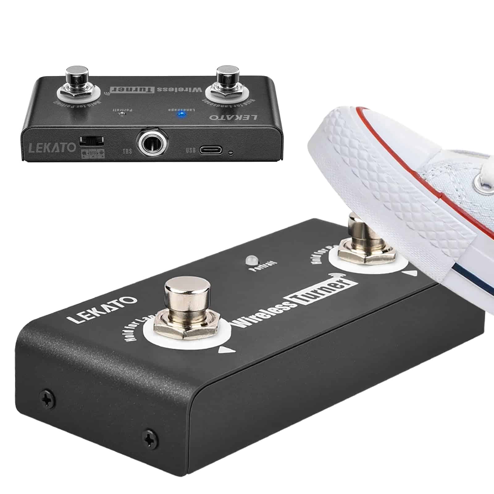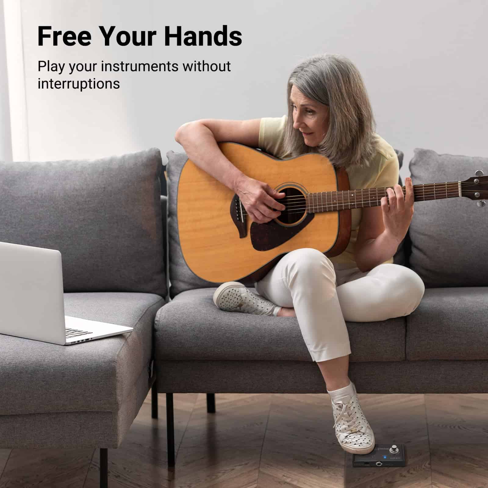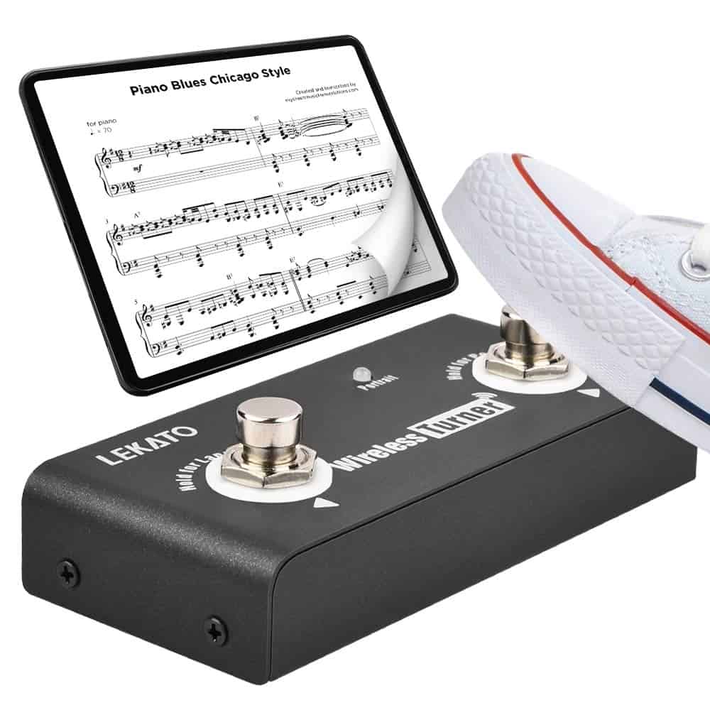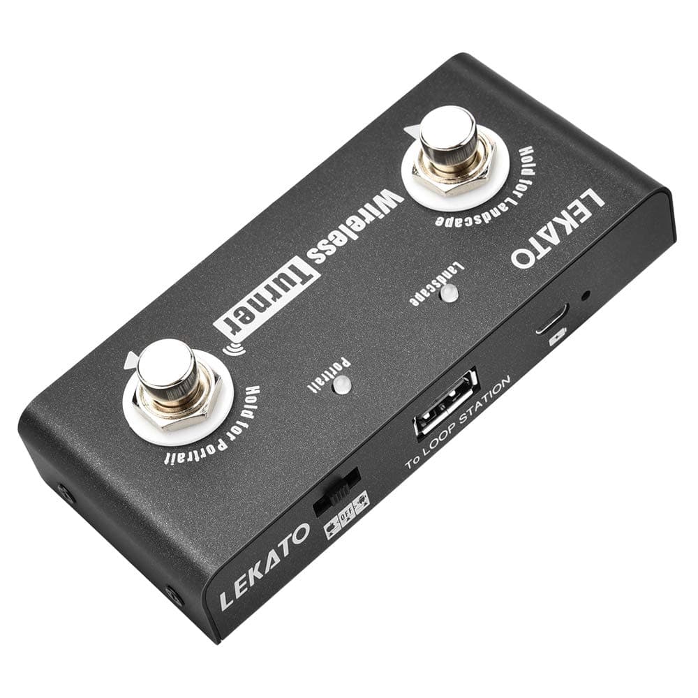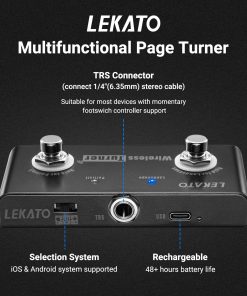 Controles de pedal: Dos botones de pie se utilizan para ayudar a la loop station a cambiar entre la canción anterior y la siguiente; Para hojear la página anterior/siguiente de la aplicación.