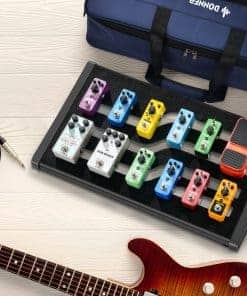 Pedalera de Efectos para Guitarra Donner, DB-S200 Juego de Pedalera de Suministro de Energía Grande con Mochila Convertible, 60″ Adhesivo de Gancho y Bucle y Dispositivo de Montaje de Suministro de Energía. Nuevo Diseño: Pedalera de efectos para guitarra de alta resistencia de aleación de aluminio fundido con integración. Las costillas inferiores mejoran la estabilidad de la pedalera del efecto. Dimensiones: 460 mm x 324 mm x 67 mm / 18.16″ x 12.76″ x 2.64″. Peso: 1,55KG. Mochila Voluminosa: Mochila voluminosa que transporta de manera segura y segura tus pedales de concierto en concierto. El diseño de hombro más cómodo libera las manos de los músicos. Conveniente para que los guitarristas lleven su equipo cuando salgan a tocar. Cinta Personalizada: 60» de gancho y bucle adhesivo de grado profesional para asegurar los pedales. Además, la pedalera contiene un soporte de pala de silicona naranja en lateral (las púas de guitarra no están incluidas), que pueden contener 3 púas de guitarra. Dispositivo de Montaje de Suministro de Energía: La pedalera se adapta a cualquier volumen de suministro de energía: Donner DP-1/DP-2, T-rex, VoodooLab, etc. Kit Funcional: Viene con una mochila voluminosa, 3 cables para pedales, gancho y bucle, y ataduras de nylon autoadhesivas ajustables para cables que te ayudarán a asegurar los pedales y bridas de cables. CONSEJOS: Este producto no incluye un suministro de energía
