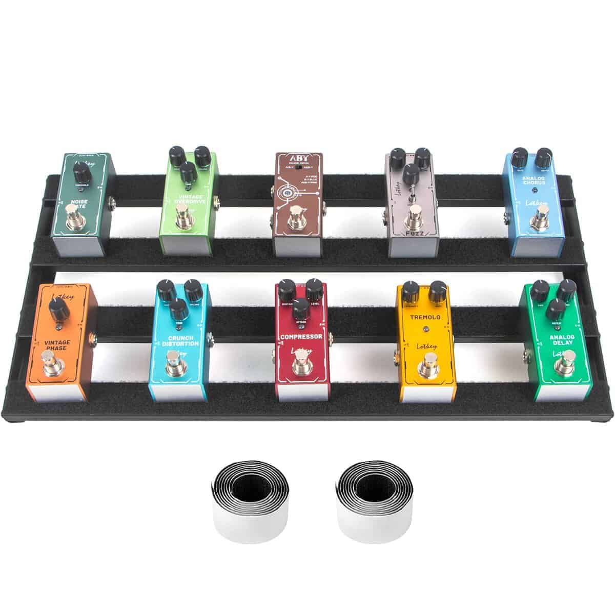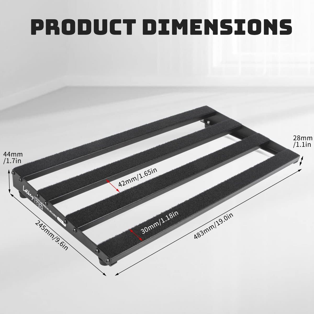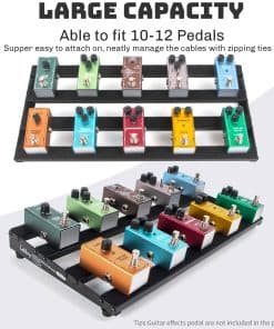 La pedalera para guitarra está diseñada para brindarte comodidad y facilidad cuando estás tocando tus pedales de efectos favoritos. Fabricada con materiales de aleación de aluminio de alta calidad, esta pedalera es ligera pero resistente, lo que la hace perfecta para tus conciertos en vivo o para practicar en casa. Con un diseño ligeramente inclinado, te resultará más cómodo pisar los pedales que en una pedalera de diseño plano. Además, sus pies de goma garantizan una estabilidad excepcional durante su uso. Incluye dos rollos de Velcro bien adhesivo para asegurar tus pedales de efectos a la pedalera, manteniéndolos seguros y firmes en su lugar. Ya sea que seas un principiante o un profesional, esta pedalera será tu aliado perfecto para sacar el máximo provecho de tus efectos de guitarra en cualquier escenario.