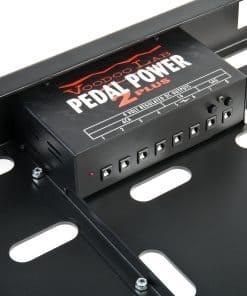 El Paquete de Pedalera Dingbat Medium Power con Pedal Power 2 PLUS tiene mucho espacio para organizar y suministrar energía individual a ocho (8) efectos estándar de 9V. Entre las ocho salidas aisladas se encuentran dos (2) salidas de 250mA diseñadas para alimentar efectos como el Line 6 DL4 Delay Modeler Pedal y los Pedales Boss Twin. Los efectos de 18V y 24V como los de MXR y Electro-Harmonix pueden ser alimentados usando los cables Voltage Doubler incluidos. ¿Necesitas una fuente de alimentación adicional No hay problema. La Dingbat tiene mucho espacio debajo para montar una Pedal Power adicional.