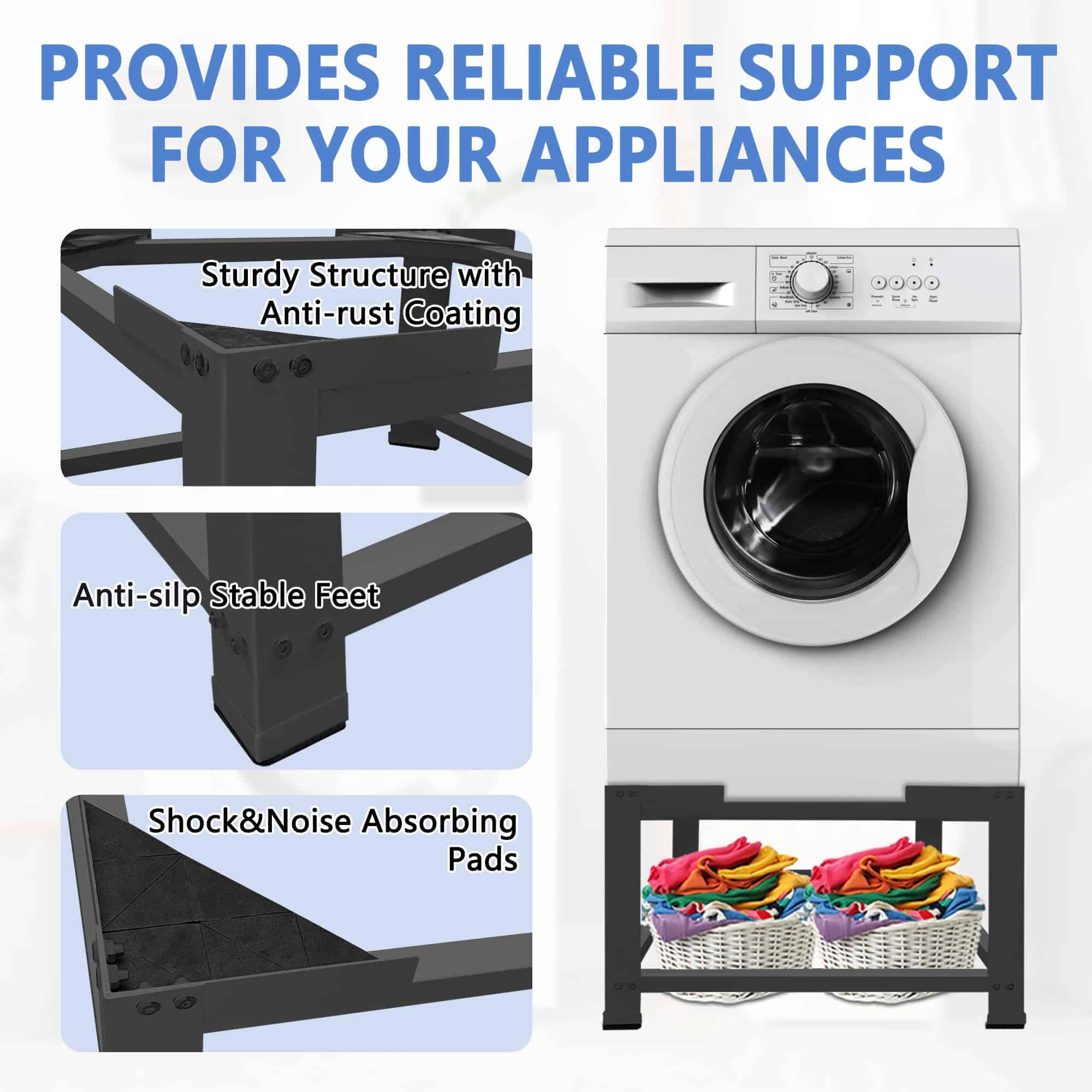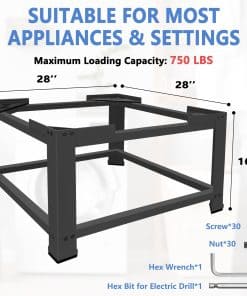 Construido con acero de alto rendimiento y revestido con un acabado premium antiherrumbre, este pedestal puede soportar hasta 800 lbs, significativamente más resistente que los modelos de la competencia. Perfecto para electrodomésticos pesados como lavadoras y secadoras. Diseñado para adaptarse a una amplia gama de electrodomésticos, este pedestal metálico se ajusta a lavadoras, secadoras, refrigeradores y gabinetes de lavandería para Samsung, LG, Whirlpool, GE, Haier, etc. Ayuda a proteger tus electrodomésticos de la humedad y prolonga su vida útil. ¡Configura tu pedestal de lavandería en solo 10 minutos! Todos los conectores y accesorios esenciales están incluidos. Para mayor estabilidad, conecta dos pedestales para una configuración de unidad doble ideal para colocar una lavadora y secadora una al lado de la otra. Se incluye una punta hexagonal para una instalación rápida. Por favor, avísanos si tienes algún problema, nuestro equipo de atención al cliente está listo para responder tus mensajes en 24 horas.