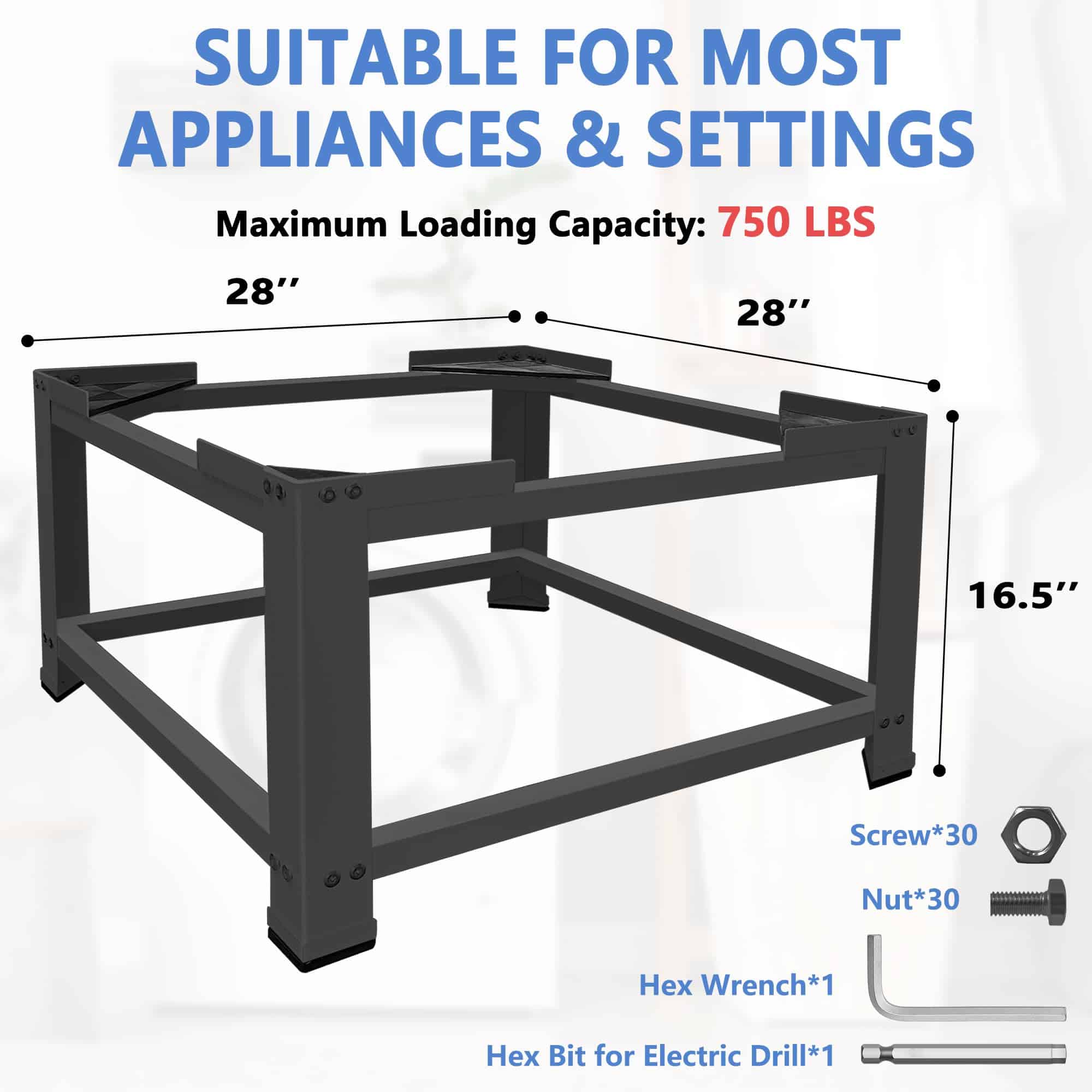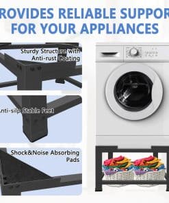 Incluye un solo pedestal de lavandería con dimensiones de 28» x 28» x 16.5». Eleva tus electrodomésticos en 16.5 pulgadas para una altura de trabajo más ergonómica, reduciendo la tensión en la espalda y las rodillas mientras mejora la accesibilidad. El amplio estante inferior proporciona un amplio espacio de almacenamiento para artículos de lavandería u objetos del hogar. Viene con 4 almohadillas amortiguadoras para reducir el ruido durante el funcionamiento.