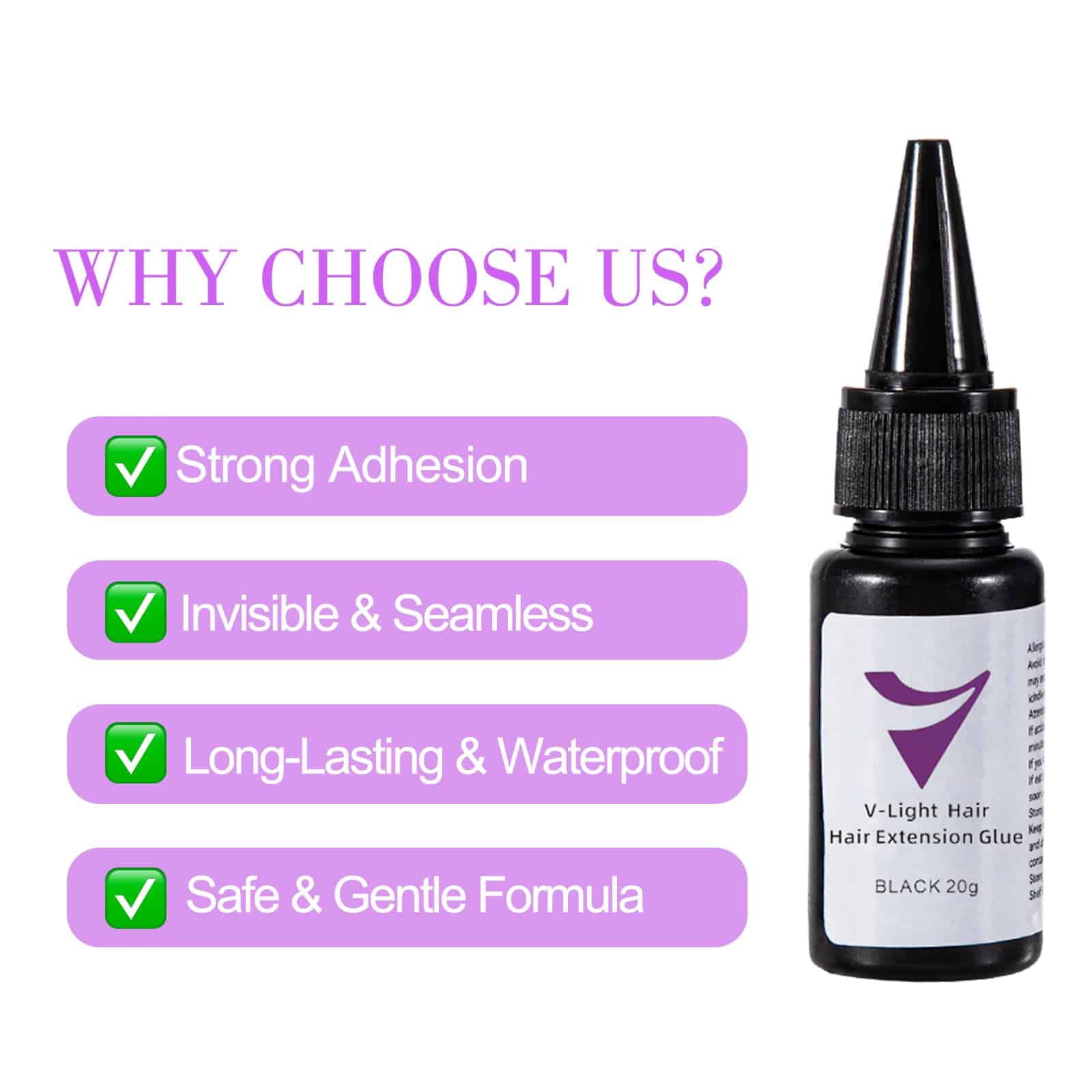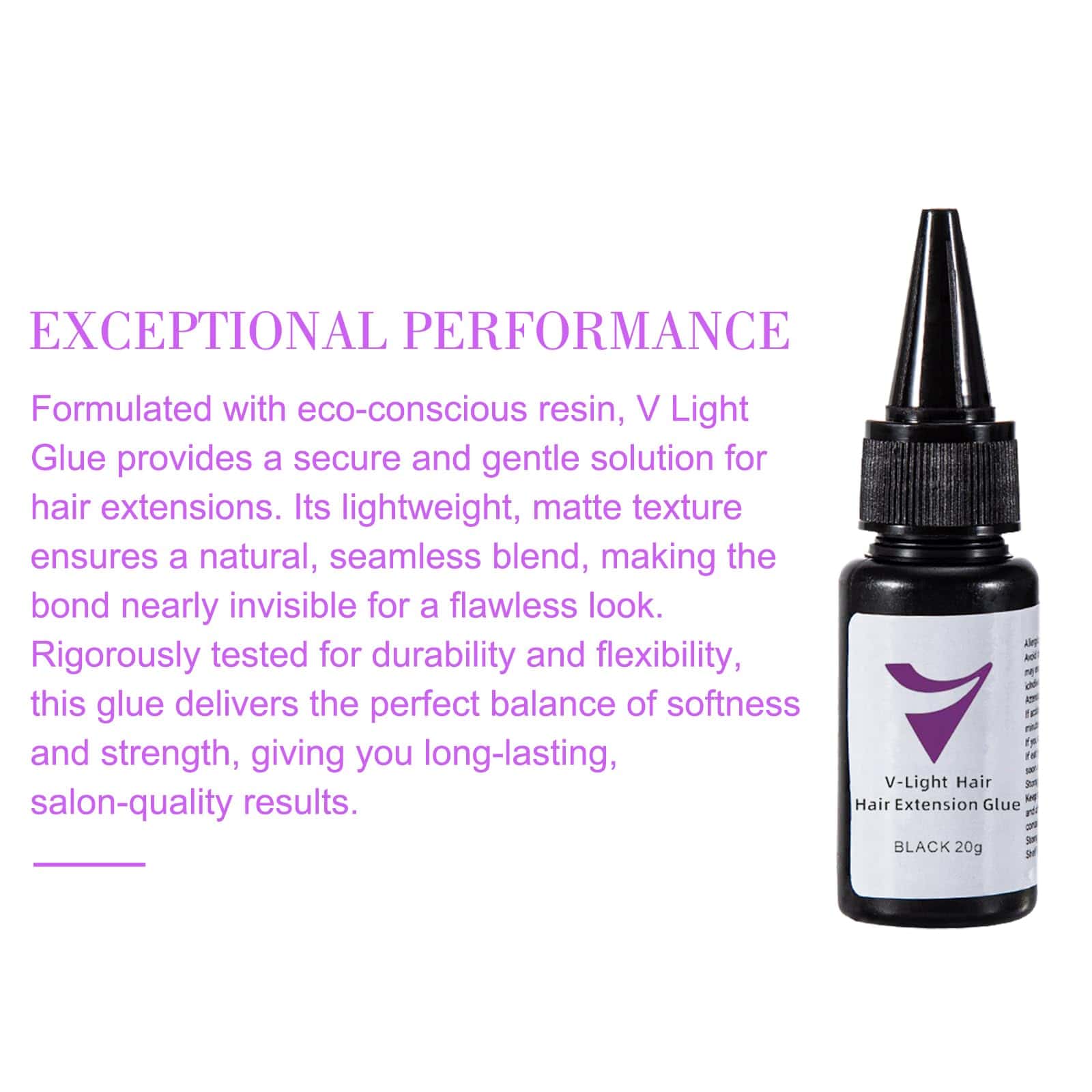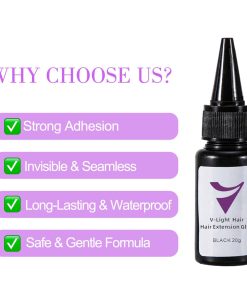La Pega para Extensiones de Cabello V-Light está formulada sin químicos dañinos como solventes orgánicos, lo que garantiza que sea no tóxica y no carcinogénica. La pega es respetuosa con el medio ambiente, segura para usar tanto en el cabello como en el cuero cabelludo, y libre de sustancias que pueden causar irritación o reacciones adversas. Los profesionales de salón y los clientes pueden sentirse seguros sabiendo que la pega cumple con los estándares de seguridad mientras también es una opción sostenible y ambientalmente responsable.