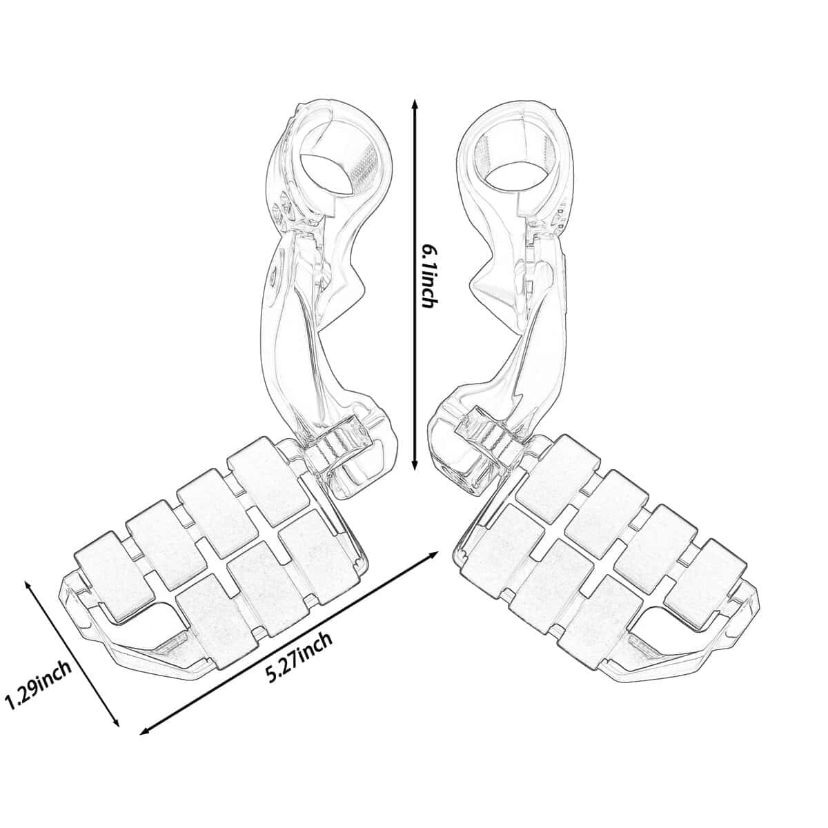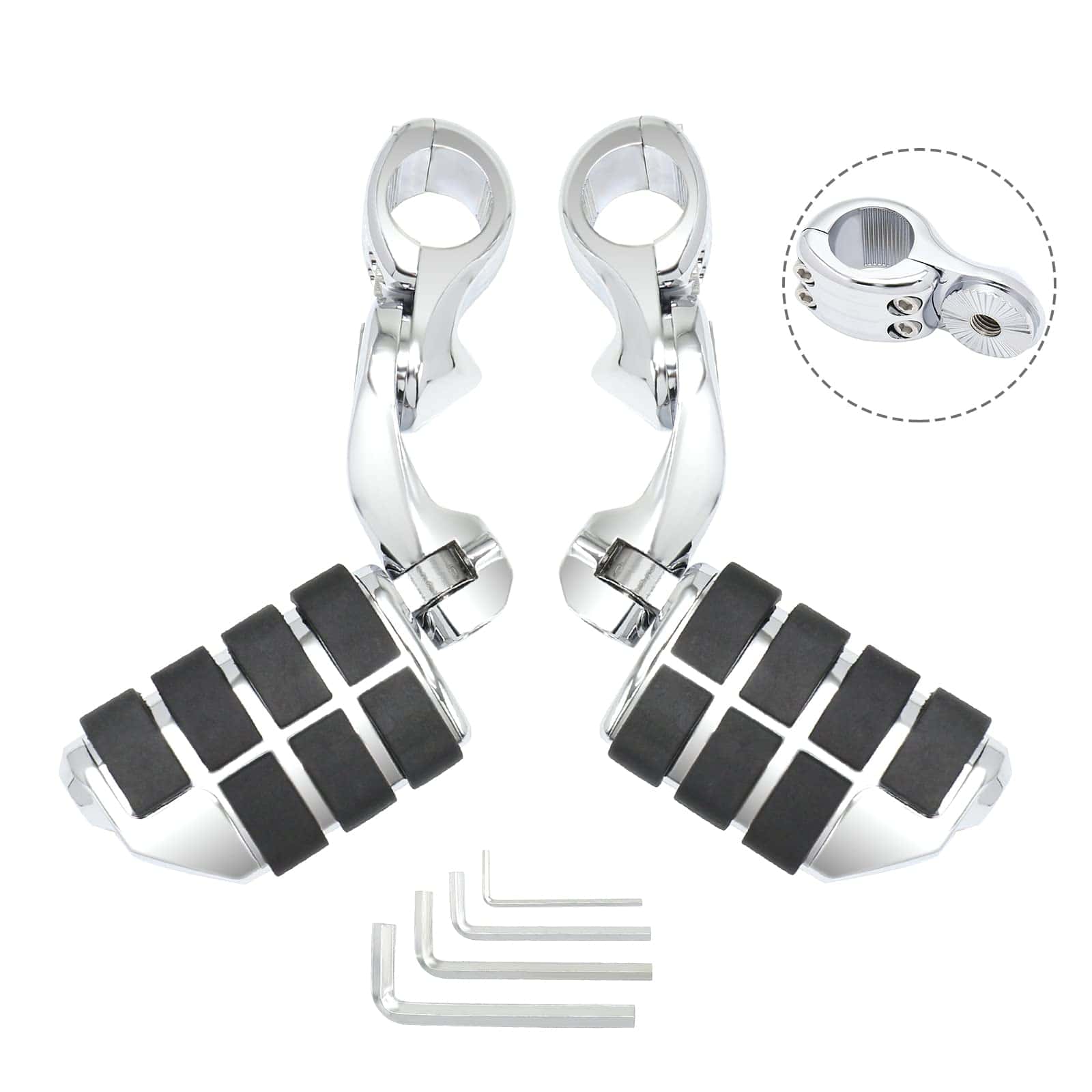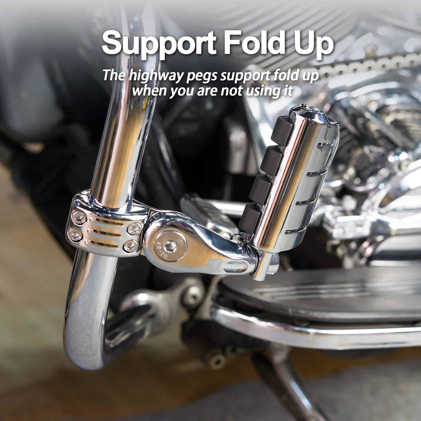 1. Material: Hecho de aluminio macizo de alta resistencia y goma de primera calidad que no se despega fácilmente; Color: Cromo. 2. Nueva abrazadera de montaje de generación: Nueva abrazadera de montaje de nueva generación, se ajustan mucho mejor y son muy seguros con abrazadera de cuatro pernos. 3. Multi-Ángulos Ajustables: El pedal y la abrazadera de montaje del pie son ajustables 360, puedes ajustar el ángulo y la posición cómodos. 4. Compatibilidad: Compatible con Harley Touring Road King Street Glide Road Glide Electra Glide con barra de carretera de 1 1/4 pulgadas; Compatible de forma universal en protectores de motor o tubos de 1 1/4 pulgadas; requiere 1 1/4 pulgadas de tubo de protector de motor recto para montaje de abrazadera (Por favor, verifica tu modelo y tamaño de protector de motor, si el diámetro de tu protector de motor no es de 1 1/4 pulgadas, no encajarán). 5. Nota: Nuestras abrazaderas de montaje han sido actualizadas nuevamente. Los problemas de instalación del producto se han resuelto y se pueden instalar fácilmente. Si hay un problema con la versión antigua que compraste, por favor contáctanos para reemplazar la nueva versión.